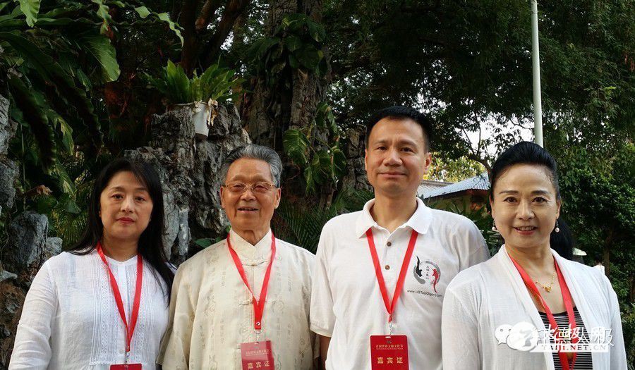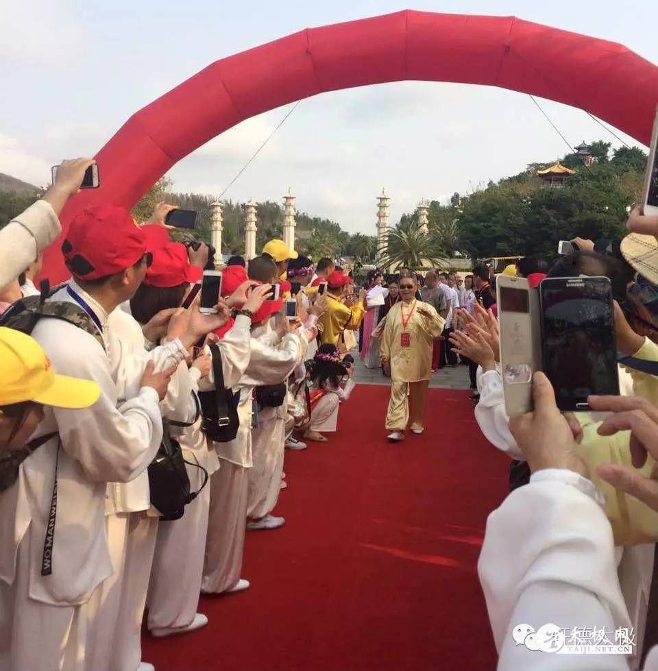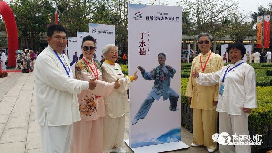 浙江杭州轩德太极拳馆馆长,浙江省武术协会顾问,浙省武协振华武术馆终身名誉馆长,香港杨式太极拳总会名誉会长, 中国武术八段,杨式太极拳第五代传人,一代宗师牛春明弟子,87岁高龄的太极大师丁水德老先生,做为三亚南山世界太极文化节太极名家特邀嘉宾,率队参加了本次活动。 太极大师丁水德老先生是这次应邀嘉宾中最为年长者之一,当他在几千名与会者的夹道中走过红地毯时,神采奕奕,身形矫健,气宇轩昂,受到了与会者的热烈欢迎。
