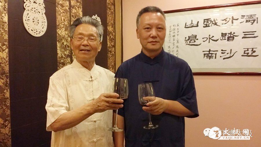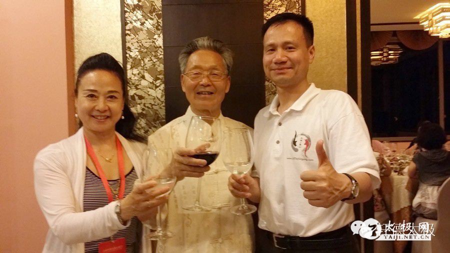 在闭幕式上,太极大师丁水德先生再次与女儿丁尔、嫡孙丁岑亮,祖孙三代同台献艺,他表演的杨式太极拳,动作松柔舒展,优雅大方,周身圆活如行云流水一般。每个动作都体现出了杨式太极拳大气风范,让数千名观众耳目一新,大饱眼福,博得了全场热烈掌声和喝彩声。 闭幕晚宴上,气氛热烈,众多的各地太极拳爱好者纷纷前来与太极大师丁水德先生敬酒、请教、合影。晚宴结束后,太极大师丁水德先生做为部分名家特约代表之一,参加了组委会关于世界太极文化发展的讨论,他们亲切交谈,并合影留念。