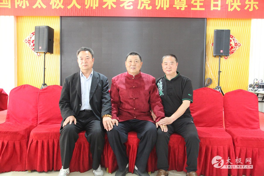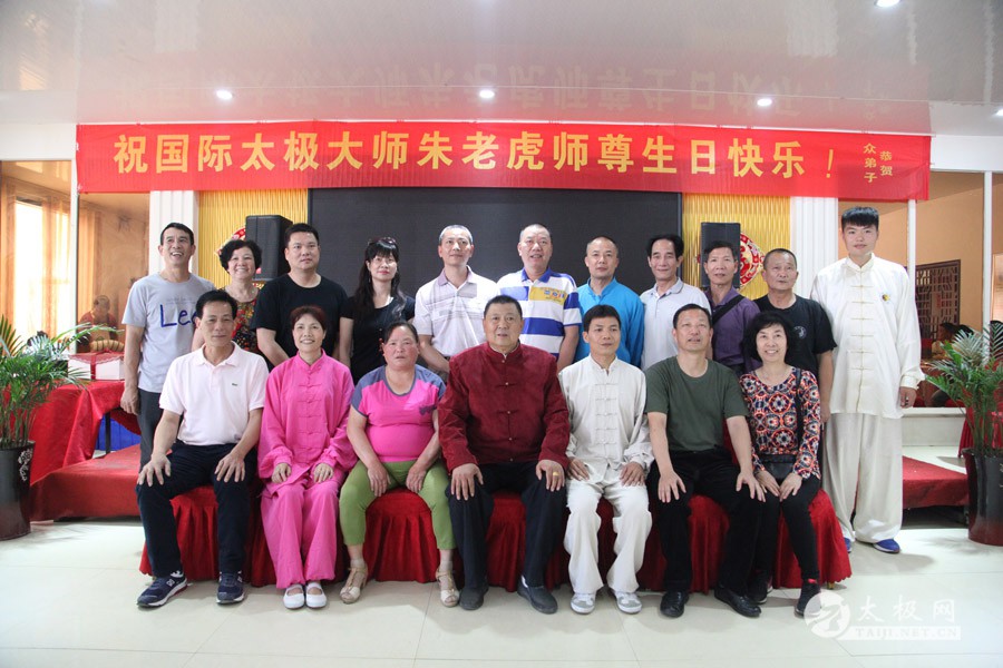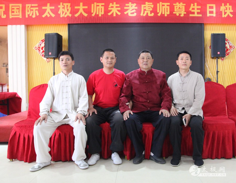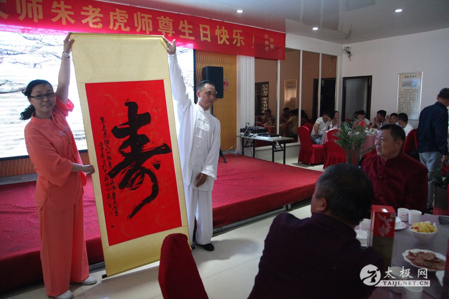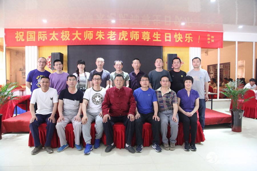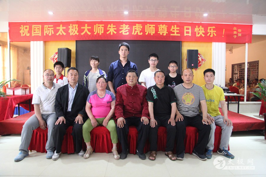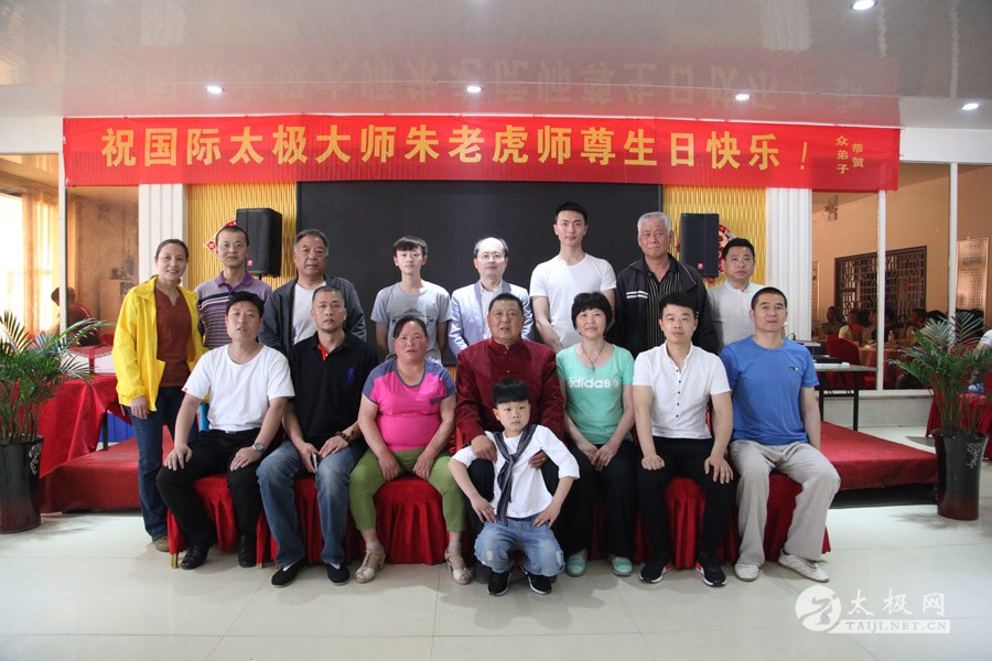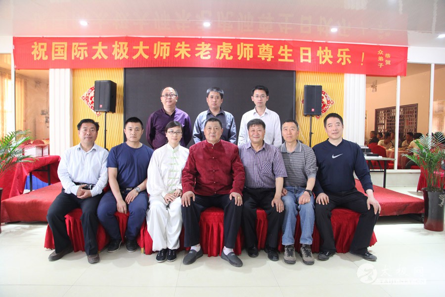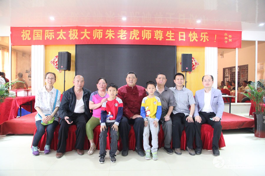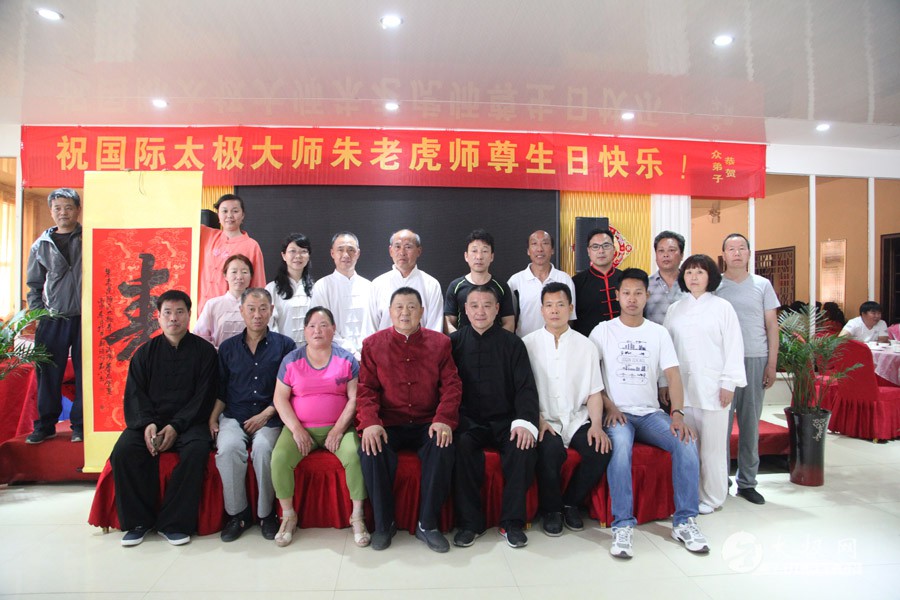 他是一代太极宗师王雁的外孙;他传道授业,将太极拳传播到全国各地,至今已是桃李满园;他扎根故土,坚守在太极拳发源地,用一腔热忱回馈家乡父老。他就是蜚声海内外的太极拳大师朱老虎。 2016年5月1日,农历三月二十五,是朱老虎大师的六十六岁寿辰。朱老虎大师六十六华诞庆典,在儿女们的操持下,在众弟子的支持下隆重举行。身穿红缎子唐装的朱老虎大师在太极拳的发源地迎接从全国各地专程赶来拜寿的亲朋弟子。中华太极拳传承人联合会特赠与朱老虎大师“大拳师”匾额。 寿宴开始前,弟子们在朱老虎大师家的院子里耍起了太极拳,让大师检阅,为寿宴助兴。 之后,寿宴在喜庆热烈的气氛中开始。 |