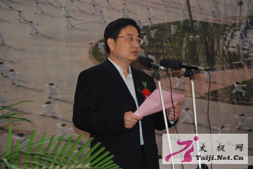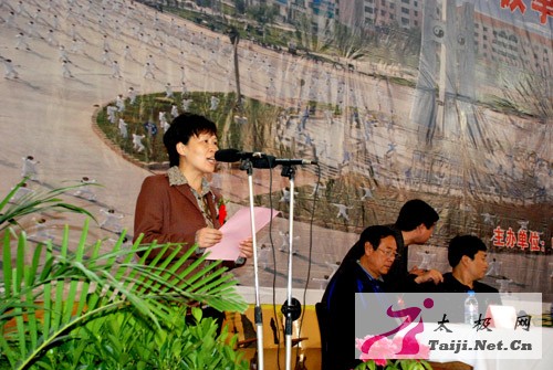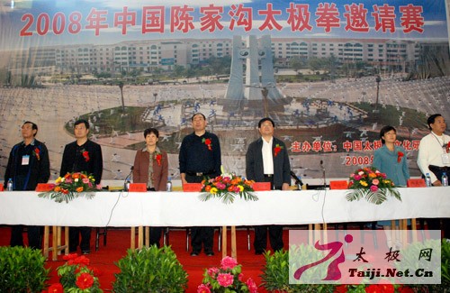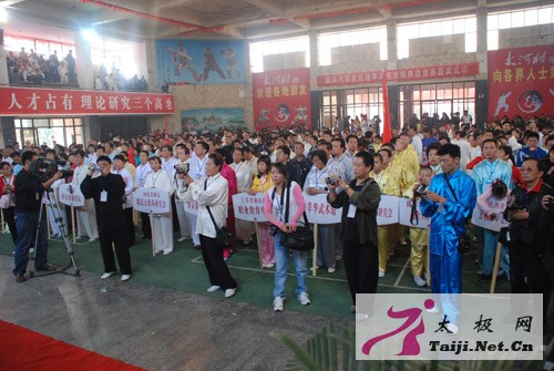 | 今天早上8点,2008中国陈家沟太极拳邀请赛在温县太极武术馆隆重开幕,来自全国各地一百多支参赛队、一千多名参赛运动员和嘉宾参加了开幕式。 焦作市体育局副局长常全旺,温县县委副书记、县长魏曰高,县委常委、县委办主任秦迎军,副县长孙菊梅,县政协副主席郑爱珍,太极拳大师王西安、朱天才出席了开幕式并在主席台就座,开幕式由县委办主任秦迎军主持。