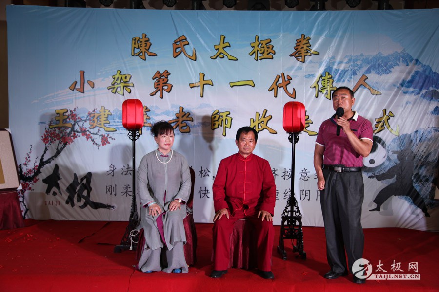 五月二十四日,开封市著名拳师王建华老师在其六十华诞之际,开山收徒。收徒仪式在开封大梁楼举行。当天前来祝贺的嘉宾有太极网总编辑刘洪奇先生、开封市武术协会副主席吕玉中先生、开封市武林界的门派代表以及王建华老师的师父范鸿信大师和同门师兄弟。 王建华老师是陈氏太极拳小架第十一代传人,师从陈式太极拳大师范鸿信先生。范鸿信老先生师从一代宗师陈克忠、陈照奎,兼修陈氏太极拳大、小架。是“国际太极拳文化传播金领大使”,太极网首席顾问。在范鸿信大师言传身教之下,王建华老师苦练太极拳三十余载,从未中断,不仅在武艺上深得师父真传,而且恪守武术传统,立德为先,在品行上也深得师父赞赏。王建华老师以其高深太极拳造诣和武德修养赢得了众多的追随者,在首次入门的弟子中就有四位来自千里之外的临安。 这场收徒仪式由开封市司仪协会会长曹明志先生和他的两位高徒主持,仪式按照武林传统举办,旨在教育入门弟子不仅要练习功夫,更要学会修德修身,继承发扬优秀传统文化。仪式上,太极网总编辑刘洪奇先生和开封市武术协会副主席吕玉中先生作为嘉宾代表致辞祝贺,刘素云女士作为师门代表做了精彩发言。 收徒仪式正式开始后,王建华老师先向师祖焚香跪拜,既表明后人敬仰崇拜之意,又表达继承发扬之志。在主持人的引导下,王建华老师及夫人就位后,弟子们依次向师父师母行三拜九叩跪拜和敬茶之礼,然后与师父师母合影留念。之后,王建华老师向弟子们训话,教导他们要做人为先,谦虚低调,不论人非,常思己过,只有做好人才能练好拳;然后又向弟子们宣读门规戒律并向每位弟子赠送了一本门陈氏太极拳门规戒律,最后弟子们宣誓并向来宾敬礼。 在宴席开始之前,来自开封八大门派的掌进行了精彩的武术表演,让在场的众位有幸一睹开封武林名家的风采。王建华老师的弟子代表们也进行了太极拳表演,一展陈式太极拳的风采。 宴席开始时,新入门弟子先向师爷范鸿信敬礼。当生日歌响起,两位弟子推着蛋糕车、两位弟子各捧着鲜花缓缓走向王建华老师时,其余弟子面向师父祝贺生日快乐,王建华老师许愿之后,吹灭蜡烛,把切下的第一块蛋糕恭敬地献给了自己的恩师范鸿信大师,既是报答恩师的悉心教导,又是以身作则身体力行地为弟子们做出表率,实实在在的上了一课:百善孝为先,做人不能忘本,一日为师终身为父。 整个拜师仪式,庄重严肃,圆满流畅,它不仅是一个仪式,更是一场精神的洗礼,相信在王建华老师的教导及弟子们的努力之下,他所传承的范鸿信大师的太极拳事业一定会发扬光大,造福众生,惠及八方。 |