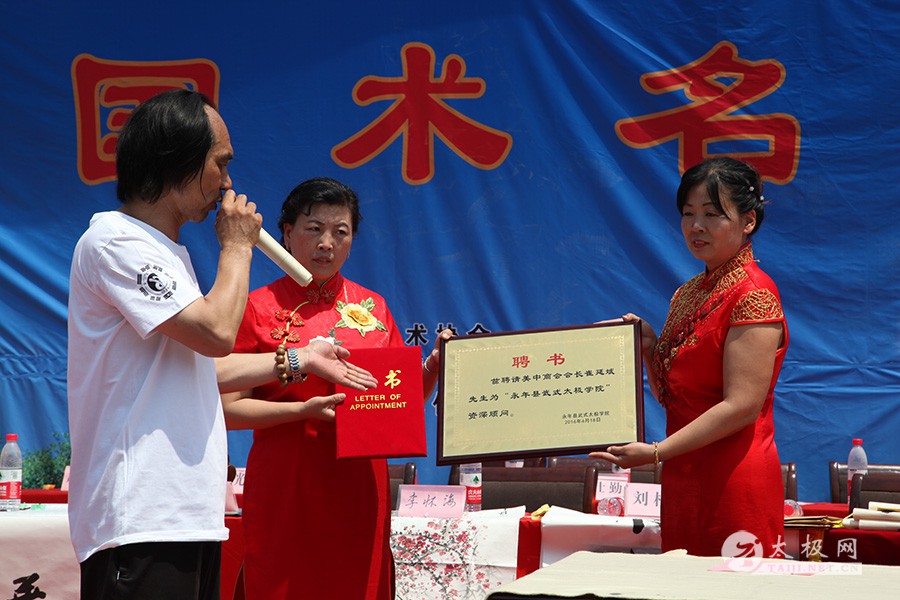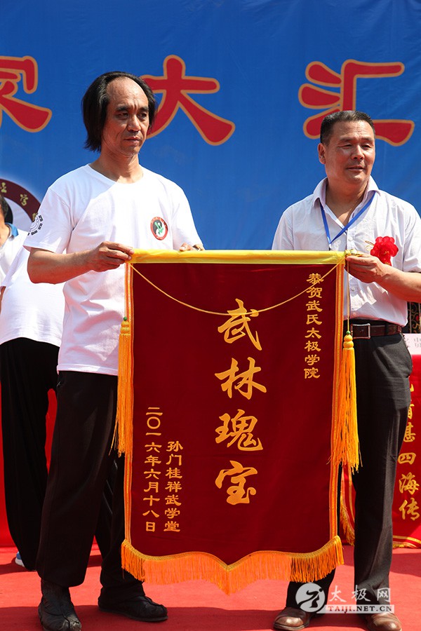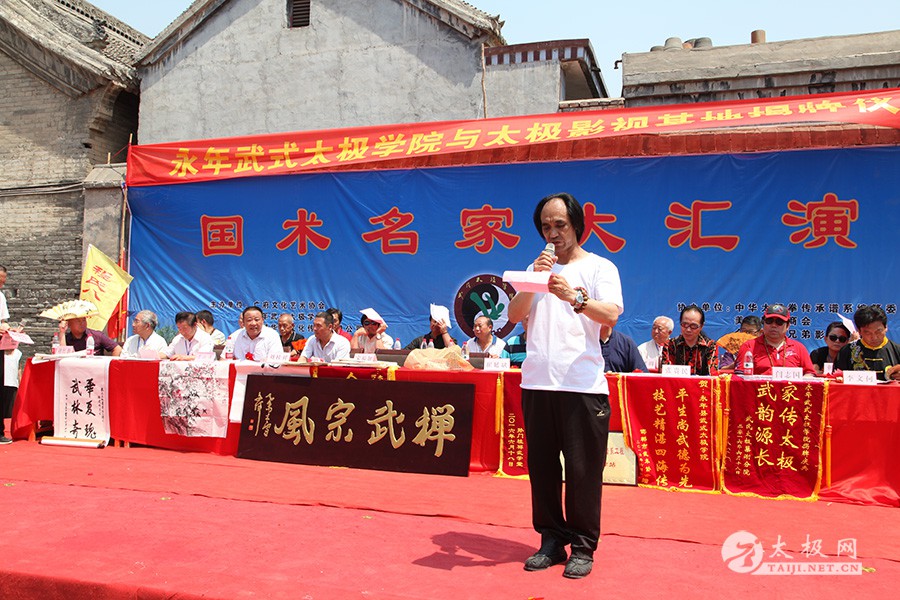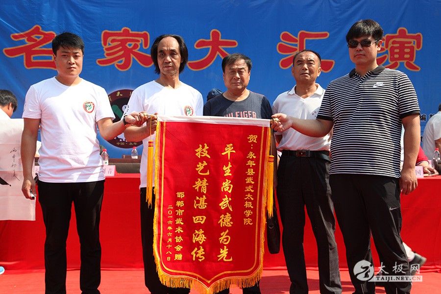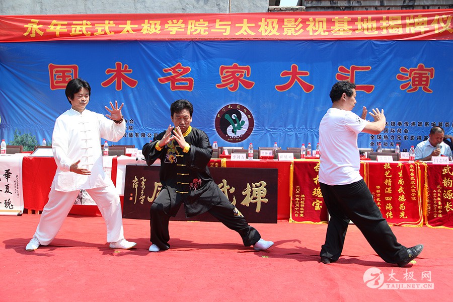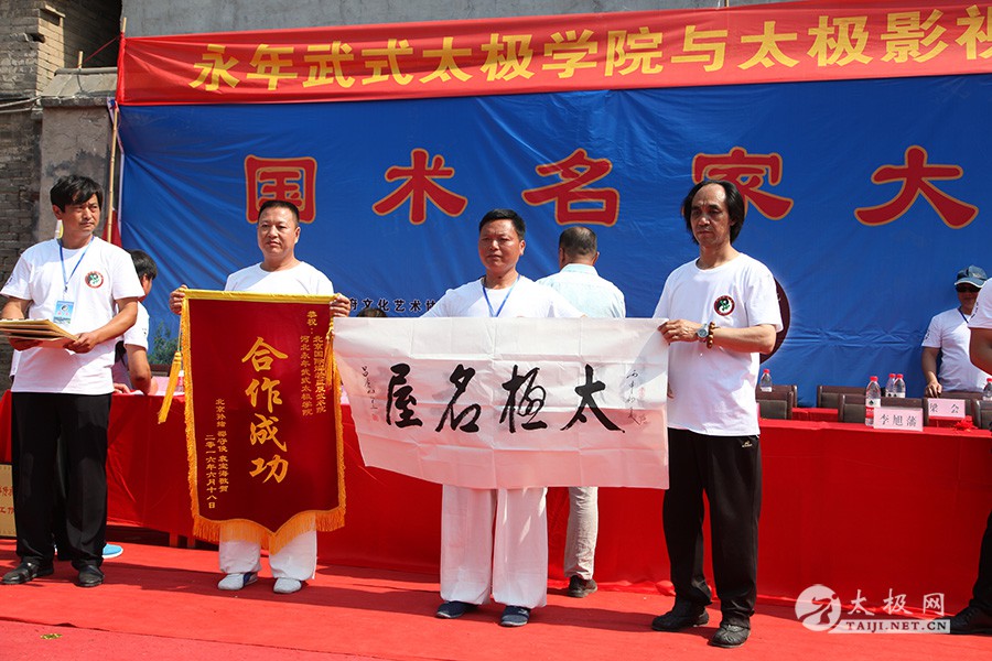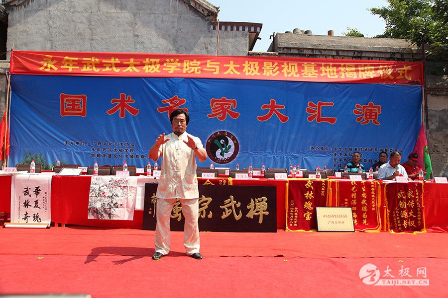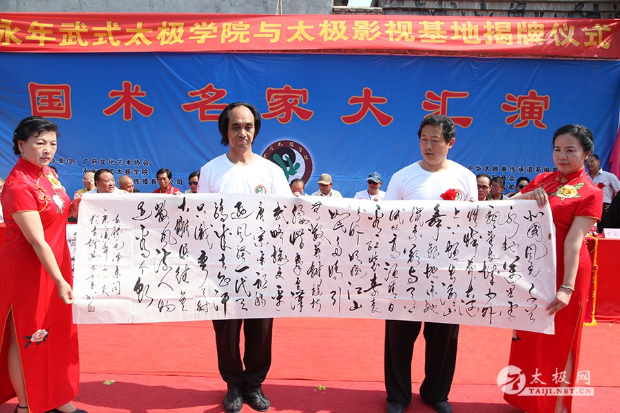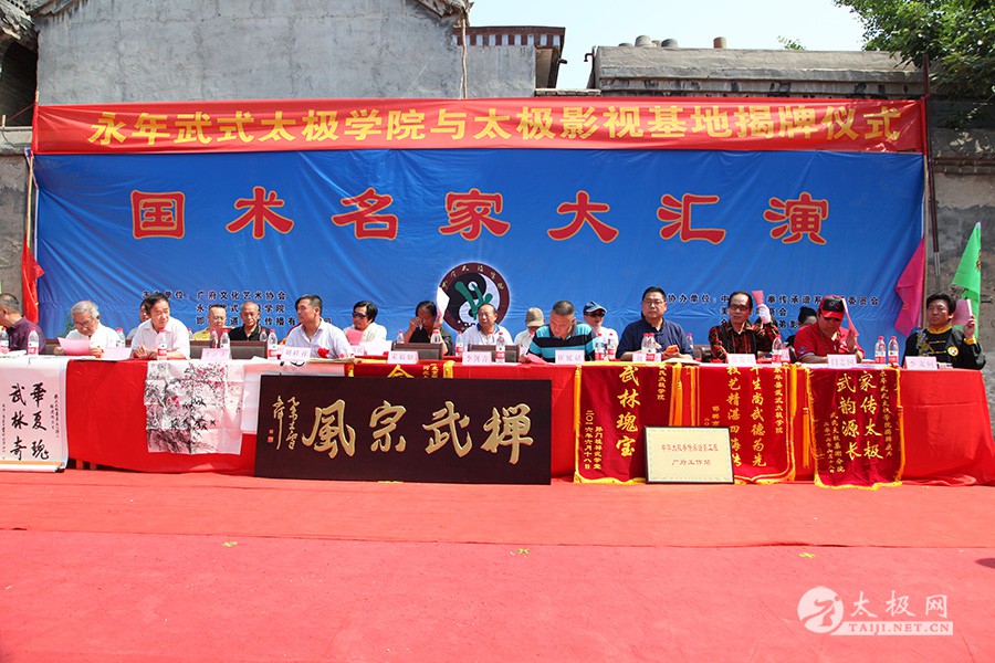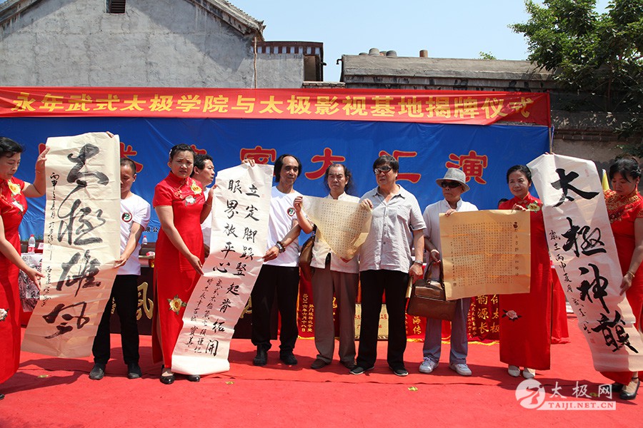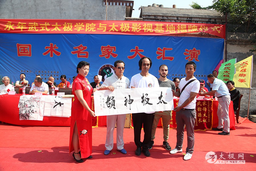 揭牌仪式前,众多武术界名家纷纷向孙建国先生及永年武式太极学院赠送牌匾、锦旗及书法墨宝,向永年武式太极拳学院的开业表达祝贺。名家大汇演由众多武术流派名家表演及武氏太极拳传人表演组成,精彩纷呈。 活动由广府文化艺术协会及永年武式太极学院等主办,由中华太极拳传承谱系编纂委员会等协办。出席活动的嘉宾有来自邯郸体育局及武术协会相关领导嘉宾、北京影视界相关人士、各流派太极拳名家、八卦掌及少林拳等众多武林门派人士。
