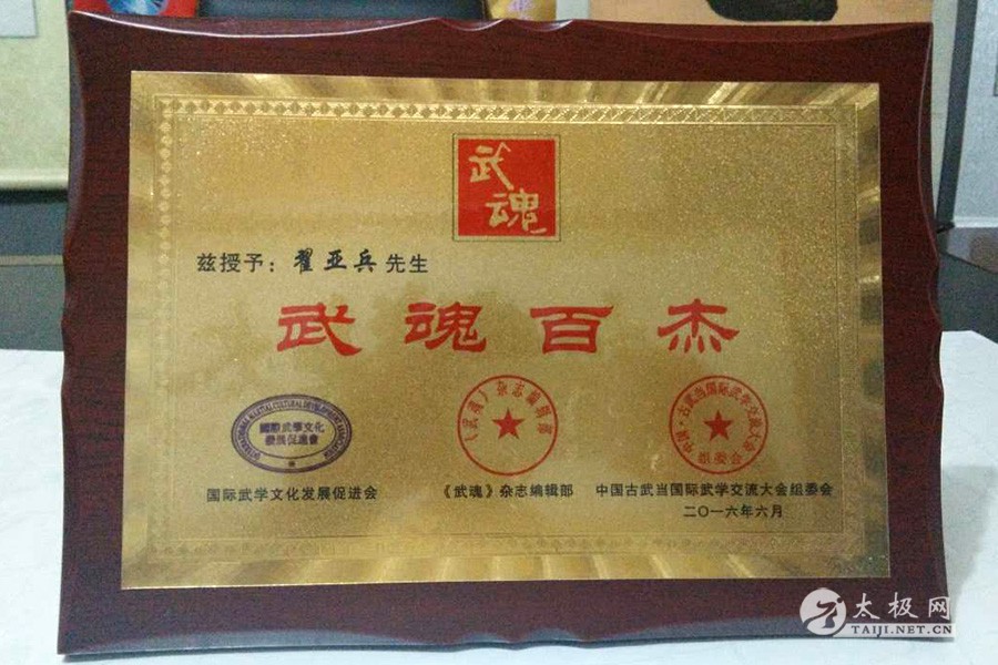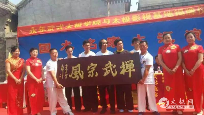 2016年6月18日,永年武式太极学院与环球热力兄弟太极影视基地在永年广府武禹襄故居举行隆重的揭牌仪式。 武氏太极巢湖分院受邀,积极组队,共10人参加。 上午9:00揭牌仪式正式开幕,首先永年县武式太极学院院长孙建国先生以最诚挚的心情致欢迎辞!与会的各界领导发表重要讲话,对揭牌仪式表示隆重祝贺和高度赞赏!与会的社会名流、武术精英和武氏太极传人及弟子纷纷赠送字画表示友谊和祝贺! 仪式上【太极·武魂】名家大汇演活动中,全国各武术门派精英,展示各自功夫,精彩纷呈,永年武式太极学院巢湖分院院长翟亚兵先生代表武氏太极展示了传统武氏太极一路中捋架,赢得了现场一片掌声和喝彩!整个汇演把仪式推向了高潮…… 上午11:00,最庄严和最隆重的时刻到了,在高亢激昂的音乐声中,在礼花和鞭炮的庆贺声中,有领导、名流为《永年武氏太极学院》等4块牌子同时揭开,展示在太极圣地————武禹襄故居,向世人传达友好之谊! 6月19日,一行武氏弟子和学生在院长孙建国先生的率领下,前往邯郸参加《中国古武当国际武学交流大赛》,武氏巢湖分院有7人参加了比赛,其中巢湖市人民法院派了四人参加了本次大赛,翟亚兵院长获得传统器械一等奖,洪伟、蒋琰获得女子武式太极拳一等奖,另有女子武式太极拳二等奖1名,男子武式太极拳表演二等奖、三等奖各2名。 最为关注和荣耀的是翟亚兵先生被国际武学文化发展促进会、《武魂》杂志编辑部、中国古武当国际武学交流大会组委会授予《武魂百杰》称号! |