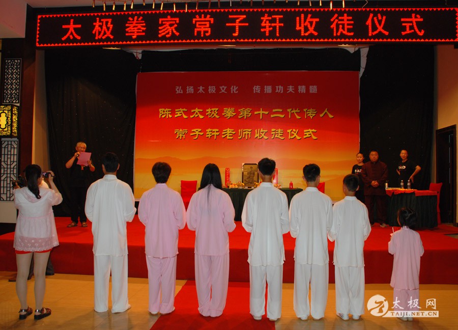 2016年6月29日,孟州市太极拳名家常子轩老师收徒仪式在孟州市华鑫宾馆举行。 常子轩,陈氏太极拳第十二代传人、少林寺第三十一代入室弟子,师承中国温县陈家沟太极拳大师陈照森和嵩山少林寺首座素喜大师,有“太极妙手”之美誉,精于太极拳内功,散手技击,内外兼修,功力深厚,拳艺精湛,致力于用传统文化揭示太极拳真谛、用太极技法提升现代搏击水平,首提太极实战的“人我合一”思想、太极修炼的“风”理论。在太极拳理论、功法、劲法及用法上见解独到、自成一家,颇有精妙之处。现任焦作市孟州太极拳协会会长、子轩功夫馆馆长、太极网首席太极拳技术顾问、陈家沟陈照森太极拳法研究会副会长、陈家沟太极拳推广中心技术总监、陈家沟太极拳研究院技术顾问、大拳师百家讲堂主讲人。 上午十点,收徒仪式正式开始。陈家沟功夫学校校长陈照森,陈家沟太极拳推广中心主任陈皂罗,陈家沟太极拳“八大天王”之一、陈家沟功夫馆馆长张福旺,陈家沟太极拳“八大天王”之一、广州陈志强太极拳推广中心主教练陈志强,太极拳研究学者赵地生,太极网创始人、温县太极拳传承人联合会主席刘洪奇,河南太极国际旅行社总经理张惠芳,陈照森太极拳研究会副会长、秘书长陈晓伟;孟州市职业专科学校副校长张潮,孟州市体育局办公室主任赵希印等,与来自德国、法国的太极拳友人到场祝贺。 仪式上,主持人简单向大家介绍了常子轩老师的学拳经历以及近年来常子轩为陈氏太极拳的传播与发展所做出的贡献。常子轩向陈氏太极拳历代先贤上香敬酒,祭告再收新徒。今日拜师的弟子有张东坡、张文仙、陈玲、李珂杰、王俊鹏、王窦恩、张锦轩七人。 之后七名新入门弟子宣读拜师帖、门规以及师训,并一一向师父递呈拜师帖、敬茶、行叩拜礼。常子轩老师为弟子披挂太极拳传承人绶带、颁发入门证书予,带领新入门弟子向师爷陈照森大师行叩拜礼。新入门弟子张文仙代表新弟子讲话,向师父表示诚挚的谢意,表示将在师父的指导下刻苦学习,将陈氏太极拳发扬广大。常子轩向新入门弟子训话时说,今天的拜师并不是修成正果的日子,而是大家学习太极拳的开始。 拜师仪式由温县滨河太极拳社社长朱江主持。 最后,师徒与嘉宾合影留念。 |