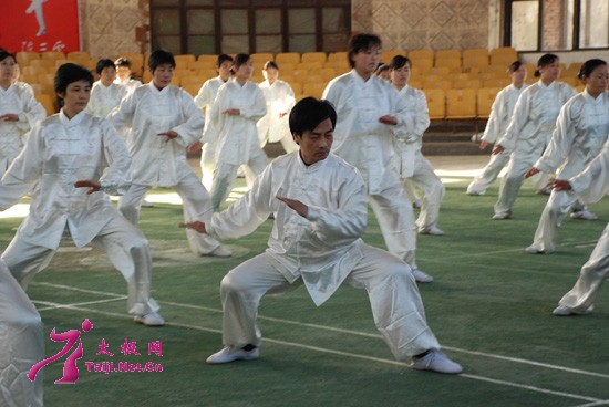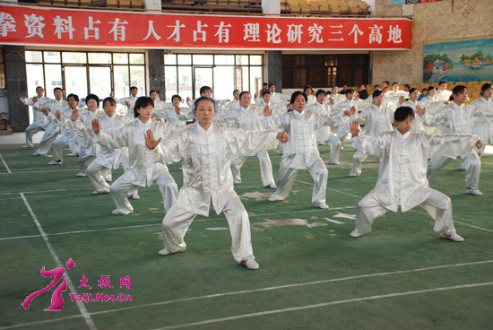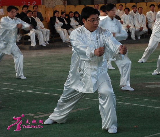 今天上午,2008"温县党政机关太极拳大赛在太极武术馆举行,总裁判陈二虎,裁判员闫素洁、李利清、郑彩霞。来自全县的各乡镇、县直各单位80支代表队的近2000名机关干部将参加此次比赛。 据了解,这是自2006年以来,温县举办的第三届党政机关太极拳比赛。