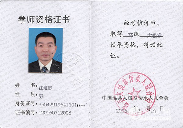 自1982年起,因担任班级文体委员,武术培训班班长,单位武术俱乐部领导,陈氏太极拳入门弟子、福州尊古陈氏太极拳馆教练等,独立执教经历有十多年,并经常协助师门执教,具有较丰富的教学和训练经验,为推广和普及中华传统武术做出了应有的努力和贡献。本人现今为福建省武术协会会员,具备武术中级教练资格证书。