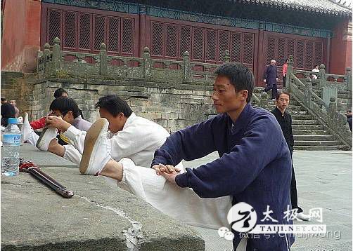 只有夯实坚固的地基,才能建起高耸的大楼。同理,基本功是提高太极拳技能的基础。基本功,可以扩展肩、胯、脊椎等各大关节的旋转范围,长期坚持习练,能防治中老年易患的颈椎病、腰椎病、肩周炎和膝关节增生等外在筋骨之病。同时,根据中医心主血、肺主气、肝主筋、脾主肌肉、肾主骨的理论,通过基本功外在筋骨活血练气的作用,能条件反射地改善和增强人体内脏的功能。我就是每天早晨坚持不懈地习练基本功,我做正压腿时,脚尖可挨着下颌;做侧压腿时,脚尖可挨着太阳穴,踢脚可过头顶。现在我已过不惑之年,手脚灵活如孩童,脏腑气盛如青年。基本功减缓了我外在筋骨皮衰老退化的进程,基本功增强了我内在精气神的功能,基本功使我身体各器官的功能保持了老而不衰的状态,所以说,基本功是养生保健的基础。 若是反之,只打太极拳套路,而不练基本功。随着年龄的增长,韧带开始硬化,肌肉开始萎缩,骨关节面的的软骨开始硬化,大脑中枢神经的传导和反应开始下降。这样,人体就出现了关节活动范围受限,韧带失去弹性,肌肉失掉了力量,神经反应迟钝等衰老症状。这样,人体就不具备太极拳的武术专业素质了,太极拳拳式手、眼、身法、步的动作也就做不到位了,太极拳套路也就演练不了。所谓“打拳不练功,老来一场空”,其中的“空”是指这样习武不能获得抗衰养老的功效,看起来你虽然天天比划拳脚,可是你与常人一样老态龙钟,笨手笨脚,这就是“空”的真意。 二 基本功是拳式动作的基石 对常人来讲,你让他做个“二起脚”(陈氏太极拳拳式),他肯定做不成。因此,我们只有通过基本功的锤炼,才能塑造出一个崭新强健的体魄。从柔韧、耐力、速度、力量、反应等方面得到了有效提高,这些专业身体素质是确保拳式动作准确无误的基石。通过柔韧素质的训练,使我们的筋抻长了,骨关节拔开了,做“下势”这类动作时就容易了。