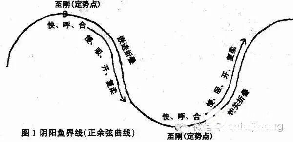 谈太极拳的刚与柔,实际上是谈太极拳的阴与阳。从太极图可以看出:(一)太极图是一个圆,圆中的正余弦曲线(波浪线)把一个圆分成面积相等的两部分,像鱼的形状,命其名为阴阳鱼。“五阴并五阳”的阴阳鱼组成了环环不已的太极图,阴鱼代表阴、柔;阳鱼代表阳、刚。从阴鱼的尾巴开始随着柔的增加,到极柔时,阳鱼的尾巴又出现了。柔极才产生刚,所以练太极拳第一步要求是去僵求柔。(二)把循环无端的万物之理用圆圈表示,阴鱼的眼睛属阳,阳鱼的眼睛属阴。在拳中表示刚中有柔,柔中有刚。 陈鑫把刚与柔的划分运用于击技方面的攻击力大小,应用太极拳原理这样说:“一阴九阳根头棍,二阴八阳是散手,三阴七阳犹觉硬,四阴六阳类好手,惟有五阴并五阳,阴阳不偏称妙手。”说明只有阴与阳相等,即五阴并五阳、刚与柔相济时,拳才合于太极,方可称太极拳。在此之前,实属软拳或硬拳,真正的太极拳功夫是经过练刚(硬)致柔、柔极生刚、刚极又生柔、刚柔成半、刚中有柔、柔中有刚的浑然太极境界。所以要真正弄清太极拳的刚与柔,就要弄清此拳为何称为太极拳,只有明白了太极拳的含义,才可以明白太极拳的刚与柔。 之所以称其为太极拳者,在拳架的一招一势、一呼一吸、一开一合的动作中,都寓示着阴中有阳、阳中有阴、阴极生阳、阳极生阴,阴阳互为其根、不可分为两半的自然规律。“里往外开者皆属阳,外往里收者皆属阴,故凡外击者为阳,内引者为阴。拳势内,外开者蓄而不发,内收者引而不击,而击搏之劲自然藏于引进之中。惟其如此,故愈练而愈精密细巧。刚柔互运,虚实参透,久练纯熟,无端绪之可寻,无迹象可指,斯为得太极之真谛。 如图1所示。太极拳每一势的定势,是柔到刚的终止点。从呼吸和发劲而言,此处一般都可以音助外呼气,发劲;从动作形体而言,此处表现为六合状态;从速度而言,此处较快,属刚。由上势转下势的过程,是转关折叠柔运的过程。从呼吸和发劲而言,此处一般都以吸气为主,蓄劲;从动作形态而言,此处表现得较柔、较慢,是开的过程。从柔到刚、从刚复柔在螺旋式缠丝运动的辅助下,手法上进到往复时,要嵌进折叠;步法上遇到进退时,要嵌以转换;在开合、收放时,要有收即是放和放即是收的意和劲,相连不断,往还无端。不只拳如此,其实世间万事万物都沿正余弦曲线呈波浪式涌动前进。 之所以称其太极拳者,太极拳十三势完全合乎太极八卦五行图。手法上的四正(属阳)掤、履、挤、按与八卦图中的坎、离、震,兑四正方相合;四隅(属阴)采、挒、肘、靠与八卦图中的乾、坤、艮、巽四斜角方向相合。步法上的进步、退步、左顾、右盼、中定与金、木、水、火、土五行相合。一招一势,均不外乎阴阳,所以命名为太极拳(如图2所示)。