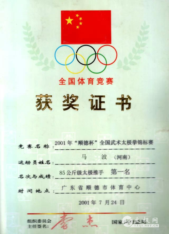 马波,男,汉族,河南温县人,当代太极拳名家,国际太极拳文化传播大使,中国武术段位指导、考评员,国家一级裁判,一级武士,中国武术协会会员,河南省陈氏太极拳协会理事,温县陈式太极拳研究会高级教练。自幼随父习练家传武术,后跟张东武、徐勤兰老师系统习练各种少林拳术,经老师推荐由少林著名大师‘素法’老师亲自受教。随后系统习练陈氏传统太极拳各种套路及器械、推手。尤擅长擒拿走化及推手、散手技击。 1996年和陈正雷、张东武老师参加全国武术精英邀请赛,获太极拳、剑金奖并获得“武林新秀”称号。同年跟随张东武老师接受中央电视台采访。 1997年获温县陈式太极拳研究会首届邀请擂台赛75公斤级推手冠军。 1998年获上海市武馆院校精英搏击赛70公斤散手冠军。同年国际太极拳年会A组75公斤级冠军。获“擂主”称号。 2000年获河南省太极拳剑推手锦标赛80公斤级冠军。同年获山东“兰陵杯”全国武术比赛太极拳金奖。 2002年陕西省太极拳交汇大赛太极拳金奖,太极拳推散手80公斤级冠军。 2004年河南省太极拳、剑、推手锦标赛85公斤以上级冠军。 2006年海南省太极拳汇宗精英赛拳、剑、推手全能冠军。 2010年获香港第8届“獬豸杯”国际武术节太极拳冠军。 1996年在焦作中站院校任太极拳总教练,98年任中国银行焦作博爱分行太极拳教练,任上海市青浦龙鑫文武学校副校长兼训练部主任,太极拳总教练,1999年任广东省中山大学太极拳总教练,华南师范大学武协名誉会长兼太极拳总教练,2002年任西安市龙湖保安培训基地搏击总教练。2004年任郑州陈家沟太极拳馆训练队队长。2005年任江苏泰州市夏平武校副校长兼太极拳总教练,2006年任海南健之韵体型与搏击俱乐部太极拳总教练,同年在海南省纪委任太极拳总教练,2012年和弟马超在惠州博罗创办‘广东东武太极拳馆’,并任馆长。鉴于太极拳方面的精深造诣及在推广普及太极拳事业做出的突出贡献,2012年和‘太极十杰’张东武老师、武林大会总冠军王战军、陈自强一起被授予‘当代太极拳名家’称号。 经和李同生老师(首批国务院有特殊贡献的国家级中医骨伤科名医专家),朱鹤亭老师(国际著名养生学家食疗学家国家领导人健康顾问),易学大师沈延春老师(沈氏玄空学创始人沈竹礽嫡孙)商议于2015年9月在道教名山罗浮山成立惠州罗浮辛可太极健康管理有限公司,致力于太极文化的传播及健康之道的推广。 |