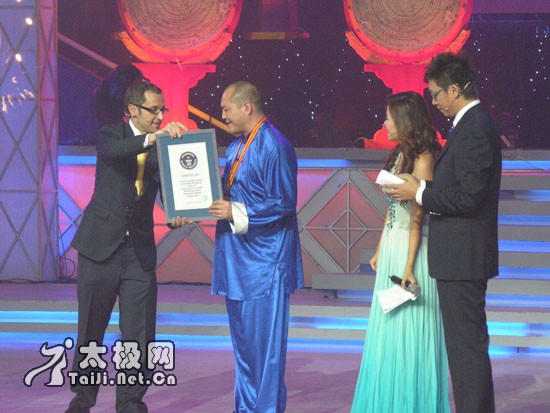 王战军创纪录 12月27日晚8时50分许,应中央电视台3套综艺频道《正大综艺》节目之邀请,陈家沟武术院执行院长王战军在《正大综艺吉尼斯中国之夜》现场创下“世界吉尼斯纪录”,用丹田弹物2000克,呈弧线弹出98厘米。