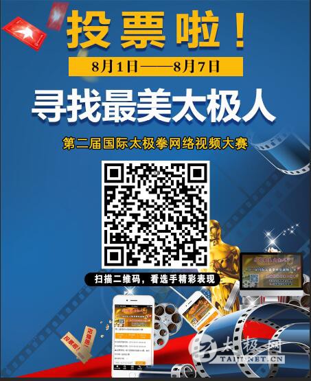 8月1日至8月7日,全球太极拳爱好者每天都可以亲手为您心目中的“最美太极人”和“最美太极人团队”投上您支持的一票 第二届国际太极拳网络视频大赛的主办单位: 焦作市非物质文化遗产保护中心 温县体育局 温县武术协会