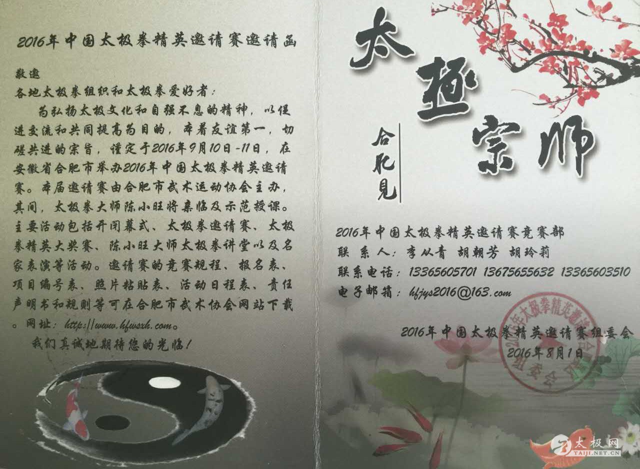 2016年中国太极拳精英邀请赛将于9月10日至11日在安徽省体育馆举行。为确保比赛顺利进行,就有关事宜补充通知如下: 一、报名