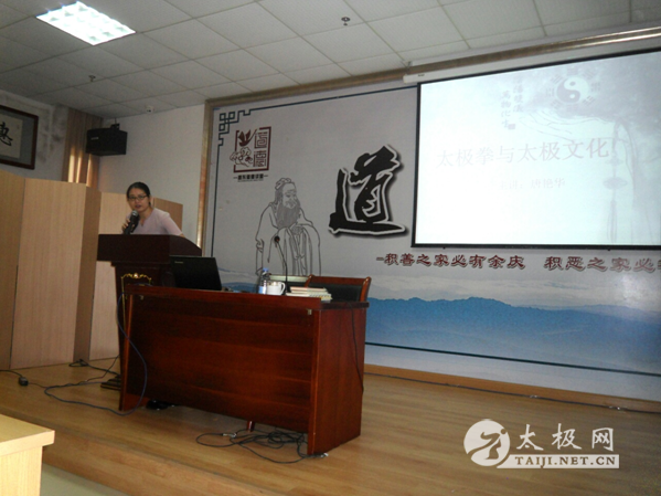 2016年8月11日,惠东县道德文化大讲堂举办了《太极拳与太极文化》讲座,邀请到了陈式太极拳第十二代传人、中国武术六段唐艳华老师主讲。惠东县文化局副局长钟士清非常关心大讲堂的工作,亲临现场指导,开课前由文化局图书馆的王丹凤介绍唐艳华老师的习武简历并宣布开课。唐艳华老师从太极拳的概念讲起,太极拳的起源与发展、太极拳健身是功效、到普及太极拳弘扬太极文化一一进行了阐述,唐老师讲的深入浅出接地气,大家听得认真投入,还有人不时的在做记录。讲课结束,惠东晨健太极拳协会为大家表演了陈式太极拳和32式太极剑,在一片掌声中谢幕。