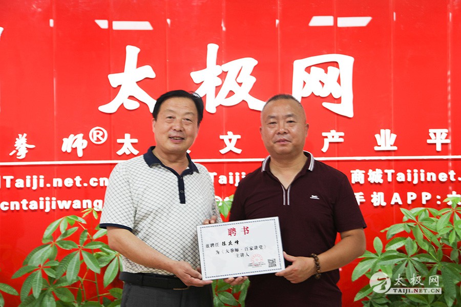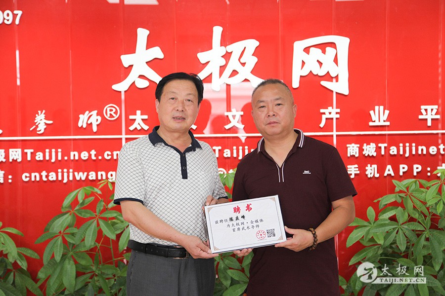 ▲陈庆峰太极拳团队造访太极网 2016年8月22日,蚌埠太极拳名家陈庆峰带领陈庆峰拳友会一行造访全球首家太极拳门户网站太极网( www.taiji.net.cn)总部,并参观了大拳师太极文化产业平台运营基地。为表彰陈庆峰老师在太极拳传播推广太极拳上的突出贡献,太极网特聘任陈庆峰老师为“《太极网·全媒体》首席武术导师”及“大拳师·百家讲堂”主讲人,后续将邀请陈老师走进太极网演播室,与拳友们交流分享太极拳。 陈庆峰,蚌埠体育运动学校副校长。中国陈式太极拳第十三代传承人,师承陈有芹,多年受到陈有芹父亲陈庆州大师指点。1984年即开始习练陈式太极拳,1988年后在省内外传拳,门下弟子众多。 先后在温县太极拳邀请赛、焦作市国际太极拳交流大赛、尊古门精英赛中获壹等奖。2012年被香港世界武术联合会授予“中国陈式太极拳名家”称号。2015年参加首届国际太极拳网络视频大赛并荣获一等奖,并获颁2015年度“最美太极人”。 |