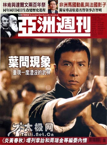 《叶问》自08年底上映至今,便不断创下骄人成绩。内地票房过亿,香港和新加坡票房也荣登了同期港产片票房冠军。不仅票房火爆,《叶问》的口碑和影响力更是惊人。《叶问》一举获得第28届金像奖“最佳电影”、“最佳导演”、“最佳男主角”、“最佳男配角”、“最佳摄影”等12项提名。各地掀起咏春拳学习热,甚至有专家称《叶问》掀起功夫热潮,有令内地武术复苏的迹象。 近日,权威媒体《亚洲周刊》就这一叶问现象,特别策划了十页专题深入采访探究。《叶问》主演甄子丹更荣登了《亚洲周刊》封面,接受了其专访。能获顶尖权威媒体《亚洲周刊》专访,甄子丹备感荣幸,大方分享演绎叶问这个角色过程中,他所感悟到的不少人生真谛。甄子丹更强调每个门派功夫,每个国家的国术,到了最高境界,最精华的部分,都一定有哲理,都值得学习。最重要的是学习的人本身的修炼,好像叶问,天生性格内敛忠厚,所以大家才会称他为一代宗师。如果一个人心术不正,即使学咏春,也学不到叶问的精神。 |