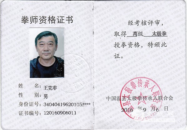 本人于2009年入陈全忠太极拳学校,师从陈全忠大师,系第十二代传承人,在师父的指导下,获得过城市武术运动会和焦作太极拳运动会的金牌,并通过了国家武术六段及国家一级裁判员资格考试。