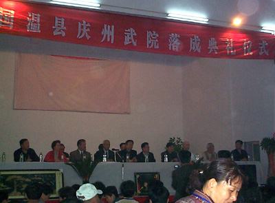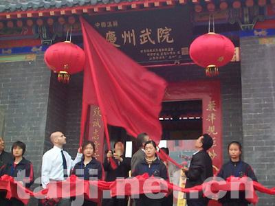 5月2日,温县徐吕村庆州武院旌旗招展,披红挂彩,笑迎四方宾客。来自中国北京、上海、南京、浙江、福建、山西、云南等地和美国、加拿大、乌克兰、新加坡200余名太极拳爱好者纷至沓来,参加国际太极拳大师陈庆州先生创办的温县庆州武院落成典礼仪式和庆祝陈庆州先生七十大寿及收徒仪式。