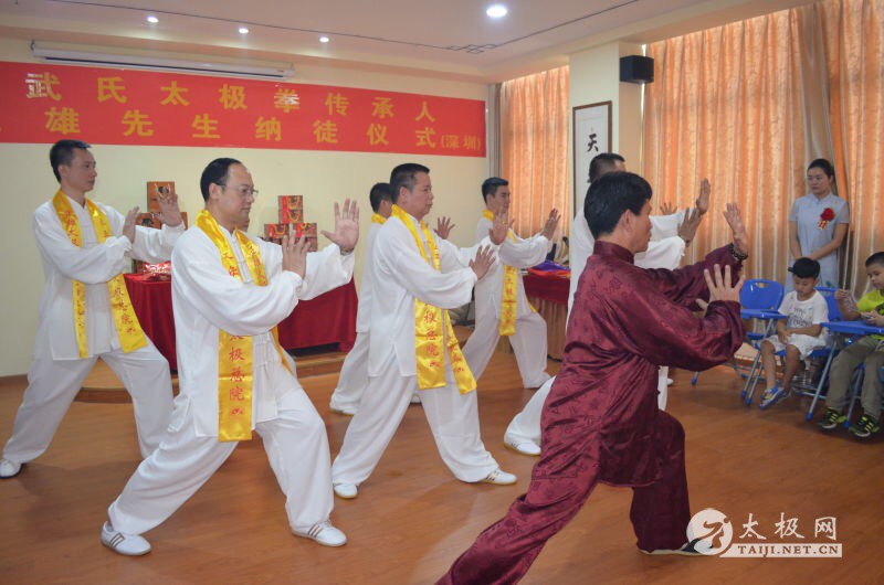 8月23日,武式太极拳名家萧正雄收徒仪式于深圳市公明天之道茶文化体验馆举行。 收徒仪式在庄严而简朴。萧正雄老师先带领新入门弟子向武氏太极拳祖师爷敬香、敬酒,并行跪拜之礼。随后弟子们向萧正雄老师呈递拜师贴、行拜师礼。随后,萧正雄老师为新弟子们披挂绶带。新入门弟子分别是陈镇松、陈少武、陈建能、徐斌、贺佩斯、鲁学武、李锦炎。 接着,新入门七位弟子一起宣读武氏太极拳门规,决心恪守武氏太极拳祖训门规,习武尚德,正心正行,全心全意修炼太极拳,一心一意学好太极文化,成为一名真正的太极人,为武氏太极拳的发展和传播贡献自己的力量。 |
