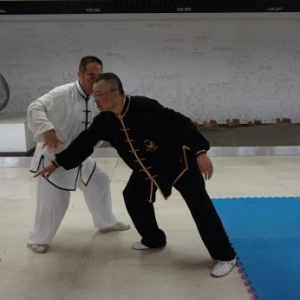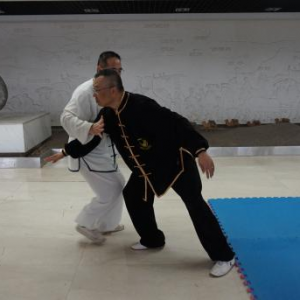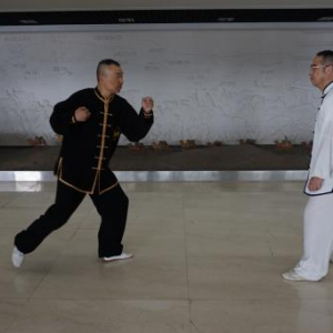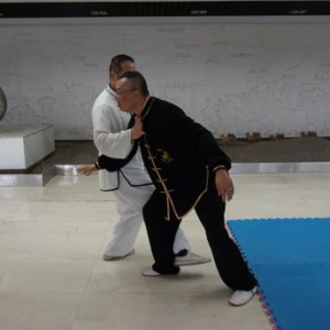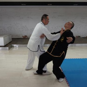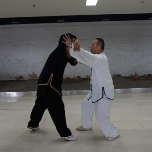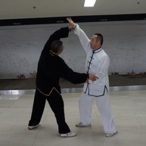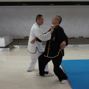 陈式太极拳大架技势招术(二) 文/罗永平 王骏 图/徐劲 第三势懒扎衣 概述:“懒扎衣”是陈式太极拳基本拳式之一,明戚继光《拳经》列为所创三十二式中的第一式,陈王廷创编太极拳时,将此式收入。“懒扎衣”的实用技法,包涵捋、按、靠、打、拿、跌诸法,“即引即缠、即进即缠”,阴阳相承,变化万端,完整的展示了陈式太极拳技法的精妙与神韵。“懒扎衣”是整套拳势的“母势”,太极拳诸多招术皆由此势演化衍生。故郝为真宗师曾说:“我练了一辈子拳,就学会了一个懒扎衣”,足见“懒扎衣”一式泛浩博深,法象藏精之渊!习练者须高度重视。其技势招术有四:指天化地、黑熊靠山、翻手为云、覆脚为雨。 招术一:指天化地 合步推手,划圈打轮。对方突双手勒我双腕,恃力扑按。我松腰沉胯先固根基,左手以腕领下引,寓左先右;右手梢节领顺缠向上,寓右先左,对开劲上下划弧,对方被右引左杳,重心即倾,我顺势转胯合劲,将对方抛出【图1-14】。 图1 图2 图3 图4 图5 图6 图7 图8 图9 图10 图11 图12 图13 图14 (散手实战中,凡对方突抓我双腕,我同样可以此招术应对。) 要诀:遇强来袭莫心慌,走圆破直法在旁。 招术二:黑熊靠山 合步推手,划圈打轮,彼按我挤,上掤引化。对方双手突抓我右小臂,恃力按推。我右腕顺缠转关下沉,化其来脉,引进致其落空。适逢其时,我旋跨右步插裆,近身右肩靠击【图1-7】。 图1 图2 图3 图4 图5 图6 图7 上势“靠击”若被对方躲过或化解,我遂跟步肘击追打【图1-5】。 图1 图2 图3 图4 图5 (散手实战中,凡对方双手抓或推按我右臂肘,皆可用此招术应对。) 要诀:用靠出击需先引,靠失肘追莫迟疑。 招术三:翻手为云 合步推手,划圈打轮 ,我于捋而未按、彼右手前掤预挤应付之际,我左手掌根粘其臂弯,逆缠用大鱼际向下滚按,对方必向我胸部跌空而来,我右手顺势逆缠翻掌迎击其面【图1-10】。 图1 图2 图3 图4 图5 图6 图7 图8 图9 图10 散手实战中,对方右拳直袭,我双手应接其右臂外侧,随即左手掌根粘其臂弯,逆缠用大鱼际向下滚按,对方必向我胸部跌空而来, 我右手顺势逆缠翻掌迎击其面,即化即打,“圆走方击”【1-11】。 招术四:覆脚为雨 合步推手,划圈打轮 ,彼按我挤,上掤引化。我适机出击,调整步法:撤右腿上左步,同时双手粘其右臂向右下捋引;对方忽被捋袭,势必回抽欲稳固重心;我趁势侧上右步蹩其右腿,右掌扑按其胸,上下合劲,将其跌覆【图1-12】。 散手实战中,对方右拳直袭,我左闪身蹈锋接其臂下捋,趁势上右步蹩其右腿,右掌扑按其胸,上下合劲,将其扑跌【图1-11】 图11 要诀:捋带出手掩真意,下蹩上扑人难防。 上述四招术,为“懒扎衣”拳式的本体实用技法,论其技要,全在以手领劲、处处用缠、刚柔相济、跌空合出。由“懒扎衣”招术三“翻手为云”衍生出诸多实战用法则实难尽详。然“虽变化万端,而理唯一贯!”正是: 引跌靠打唯缠精,鱼际滚按显真谛;其间诸法若常践,方能识得“懒扎衣” 本文发表在《中华武术》杂志2016年第9期上半月刊P66-68上。 (原创文章,转载请注明作者、出处等) |
