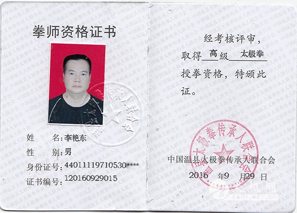 李艳东,生于1971年、广东丰顺人、自幼酷爱武术,曾经学了五年的散打和擒拿格斗,后拜太极拳名家、八大大王之一—陈志强为师,拳艺精湛。国家二级武术裁判、国家社会体育指导员、陈家沟太极拳研究会副秘书长、广州市花都区陈氏太极拳协会副会长。2016年5月广东省陈氏太极拳精英赛获得陈氏太极拳金牌。 拳照 |