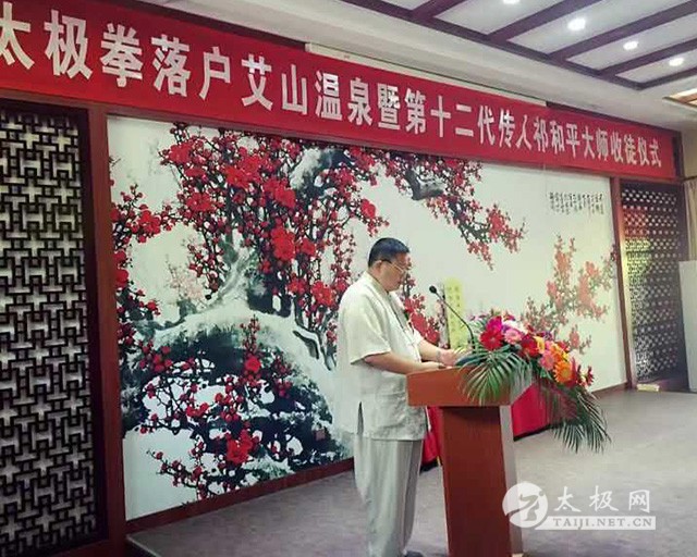 (太极网报道)9月26日上午,陈氏太极拳落户艾山温泉暨第十二代传人祁和平大师收徒仪式在艾山温泉国际旅游度假村举行,这标志着艾山温泉倡导的第五代温泉理念向实现又迈出坚实的一步。