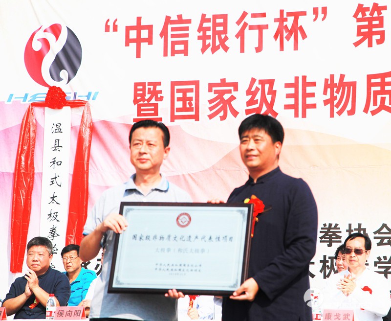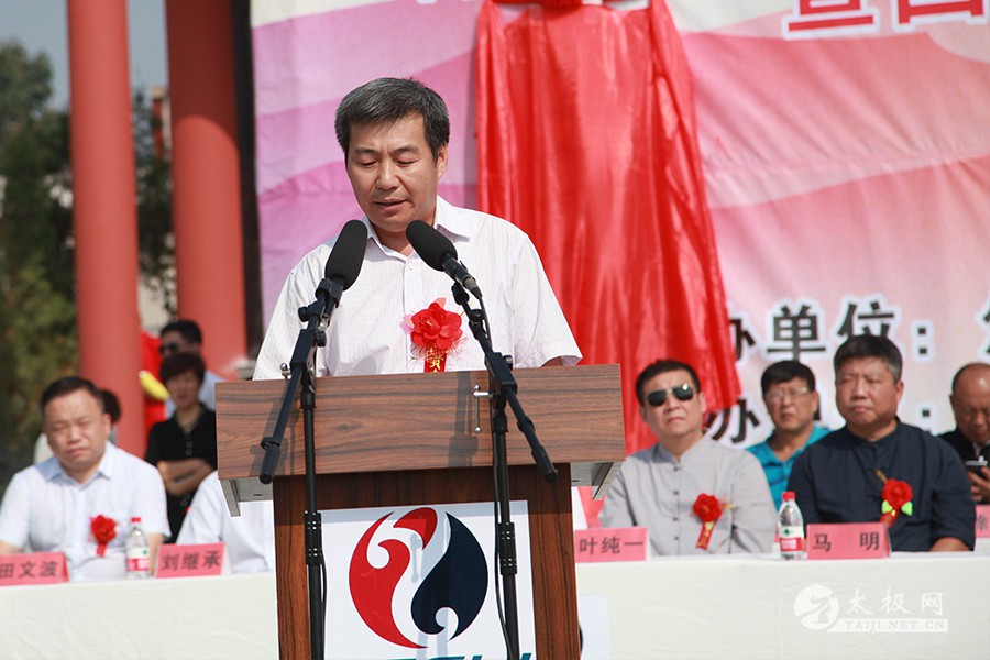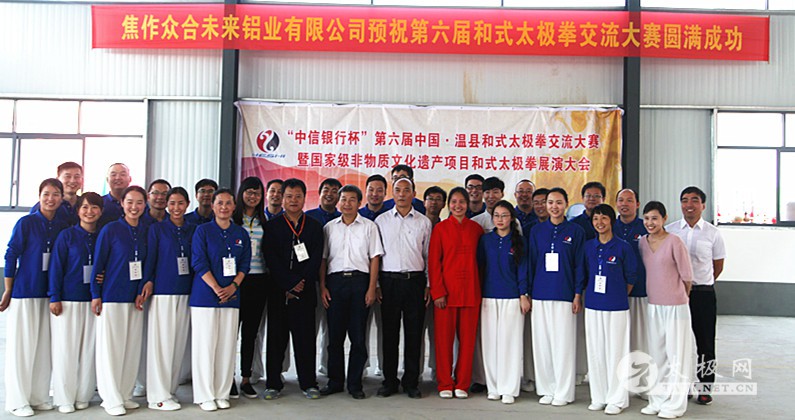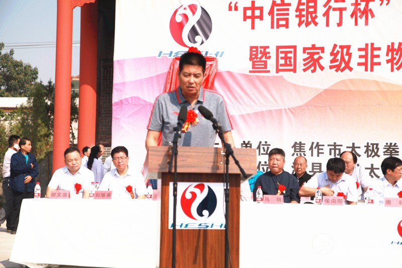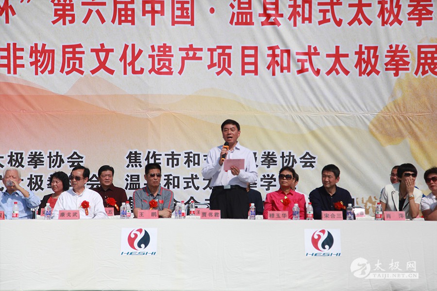 焦作市武书协会主席 张志远 太极拳发源地温县人民政府相关领导高度重视此次活动,出席活动的有温县人民政府县长唐毅,温县县委宣传部部长侯向阳,温县人民政府副县长李美玲,温县体育局局长宋明军,温县文广新局局长王兵,景区管理局长杨兆辉等。相关嘉宾王小五、史玉霞、程斌、和保森、和定乾、徐秋、戴忠铭等。 嘉宾席 李美玲为大会致欢迎辞,王鹏、陈文兴等为大会致辞,和有禄致开幕辞。相关揭牌仪式上,王鹏、贾书君、唐毅、康戈武等共同为温县和式太极拳学院揭牌。王兵向和氏太极拳代表性传承人和有禄颁发国家级非物质文化遗产代表性项目“太极拳(和氏太极拳)”牌匾。穆玉华、肖萍为国家级非物质文化遗产项目传习基地揭牌;洪浩、侯向阳为河南大学公共体育部高水平生源基地揭牌;李美玲、马文国为西安体育学院实践基地揭牌;马明、赵功佩为河南理工大学体育学院生源基地、实践基地揭牌。 温县人民政府副县长李美玲致辞 中信银行陈文兴行长致辞 温县和式太极拳学院院长和有禄致辞 省体育局副局长王鹏致辞 温县和式太极拳学院揭牌仪式 国家级非物质文化遗产授牌仪式 国家级非物质文化遗产项目传习基地揭牌 河南大学公共体育部高水平生源基地揭牌仪式 西安体育学院实践基地揭牌仪式 河南理工大学体育学院生源基地、实践基地揭牌仪式 参加开幕式现场文艺表演及和式太极拳展演的有:焦作市和式太极拳协会表演自主创编的大合唱“和式太极拳之歌”,中信银行焦作支行选送舞蹈中信红、红动中国,湖北襄阳和式太极拳协会选送的节目春江花月夜之和式惊鸿舞,焦作市和式太极拳协会选送的节目“太极和茶”,湖北孝感和式太极拳协会选送的中国武术段位制和式太极拳段位展示等。最后,国家级非物质文化遗产项目代表性传承人、温县和式太极拳学院院长和有禄展示传统和式太极拳,将现场气氛推向高潮。 大合唱“和式太极拳之歌” 舞蹈中信红、红动中国 春江花月夜之和式惊鸿舞 和有禄老师太极拳表演 表演结束后,贾书君部长宣布中信银行”第六届中国温县和式太极拳交流大赛暨国家级非物质文化遗产项目和式太极拳展演大会正式开幕! 贾书君部长宣布大会开幕 据悉,本次活动特邀全国多位专家参加,盛会共吸引来自全国的40余个代表队近千人参与。中国·温县和式太极拳交流大赛自首届大赛于2006年成功举办以来,此后数年从未间断,已成为和式太极拳的品牌赛事。 盛会期间温县和式太极拳学院宣告正式落成,引发整个太极拳界关注。和式太极拳学院是首家国家级非物质文化遗产项目和式太极拳传习所,是集和式太极拳教学、文化旅游、和文化传播与发展于一体的综合性学院。 漯河和式太极拳协会 江西龙南和缘太极拳俱乐部 来自全国各地的参赛队伍 来自全国各地的参赛队伍 此次大会期间和式太极拳学院正式落成,吸引了整个太极拳界的目光。和式太极拳学院是首家国家级非物质文化遗产项目和式太极拳传习所,是集和式太极拳教学、文化旅游、和文化传播与发展于一体的综合性学院。 活动现场 活动现场 温县和式太极拳学院院长和有禄表示:此次交流大赛和展演大会以及温县和式太极学院落成典礼的成功举行,离不开关心和支持和式太极拳发展的相关领导嘉宾以及社会各界人士。温县和式太极拳学院热烈欢迎从全国各地前来参赛的拳友,也欢迎全国各地的和式太极拳传承人来学院参观指导、学习交流。