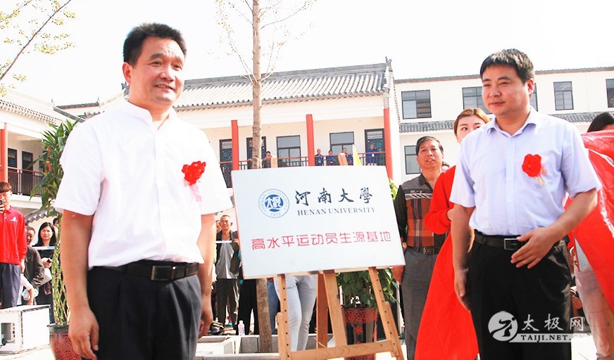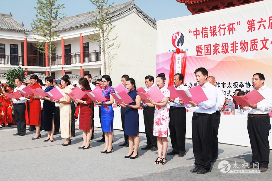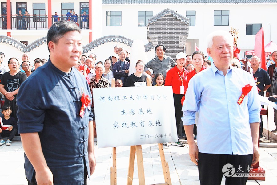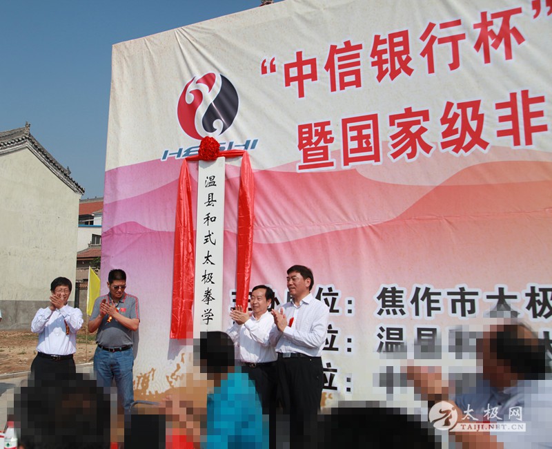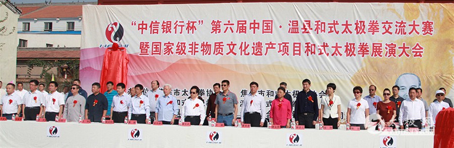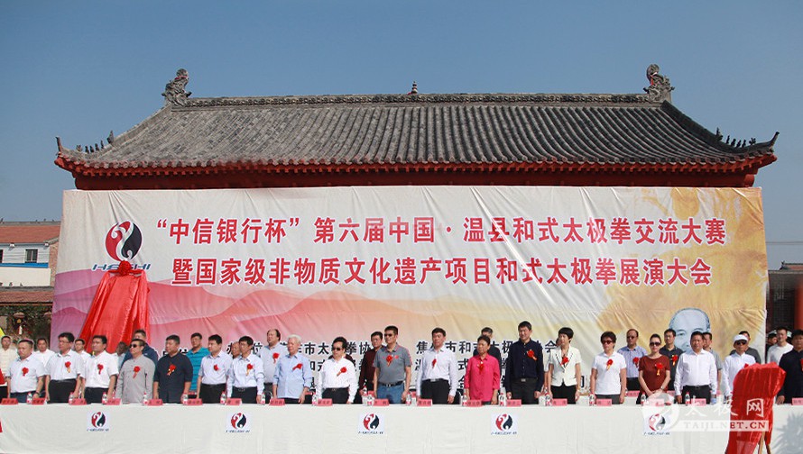 (太极网报道)2016年10月3日,由焦作市太极拳协会、焦作市和式太极拳协会主办的“中信银行杯”第六届中国•温县和式太极拳交流大赛暨非物质文化遗产项目和式太极拳展演大会在位于温县赵堡镇的和式太极拳学院举行盛大的开幕式,与此同时,和式太极拳学院揭牌仪式及落成典礼隆重举行。 温县和式太极拳学院(摄影 太极网陈超) 出席活动的省市领导及嘉宾有: 国家体育总局武术研究院研究员 康戈武 河南省体育局副局长 王鹏 焦作市委常委、宣传部长 贾书君 焦作市人大副主任 穆玉华 原焦作市政协主席、焦作市太极拳协会会长 赵功佩 原焦作市政协副主席 和金贵 焦作市中信银行行长 陈文兴 众合未来铝业经理 刘新建 河南省武术运动管理中心副主任 宋合三 焦作市体育局党组副书记 肖萍 孟州市委常委、市委办主任 刘继承 江西省武术运动管理中心副主任 叶纯一 河南大学公共体育部主任 洪浩 西安体育学院武术系主任 马文国 河南理工大学体育学院院长 马明 河南理工大学体育学院副院长 杨黎明 山西省体育职业学院书记 陈洁 《武术科学》主编 田文波