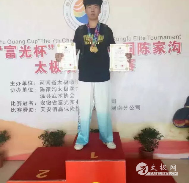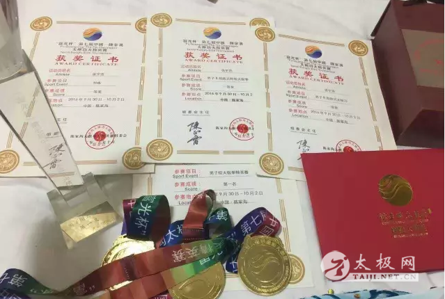 又何止是这次比赛?仅仅在今年,3月份在香港举办的“传承杯”香港国际武术节上接连斩获拳、刀、对练、集体四块金牌。6月份在“体彩杯”2016河南省武术大赛中,张宇浩代表郑州市拿下全场最高分,强势夺得男子B组陈式太极拳冠军... ...,同行的小伙伴纷纷说:“不服就来挑战他!”