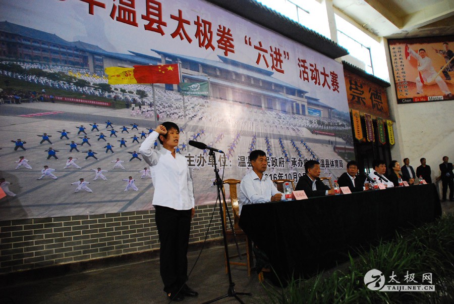 (太极网温县报道)2016年10月9日,正值九九重阳节,2016温县太极拳“六进”活动大赛在温县太极武术馆开幕。来自全县各乡镇、党政机关的近五十个队伍参加了此次大赛。 2016年3月温县县直机关工委下发了《关于在全县持续开展太极拳普及推广活动的通知》,就企事业单位开展太极拳演练工作进行部署;温县体育局于3月16日组织开展了2016年第一期社会体育指导员培训班;温县教育局组织精干力量全面推进温县中小学太极拳教材编写工作;全县太极拳“六进”活动大赛盛大开幕……一系列活动的开展,掀起了温县太极拳“六进”工作的高潮。 温县人民政府副县长李美玲女士在开幕式上讲话 为打造享誉世界的太极圣地,2016年,温县把太极拳“六进”工作作为重中之重。温县体育局和教育局分别组织科室骨干、太极名家、体育教师等全力开展中小学太极拳教材编写工作,并开展全县各中小学生太极拳达标验收,对太极拳教师持证上岗进行考核;积极整合全县教育资源,开办太极拳双艺学校,促进太极拳进校园。 同时,温县县直机关工委要求全县机关单位于3月中旬至4月底必须组织人员进行套路练习,力求每名干部职工能够掌握1~2套太极拳,每个单位参与习练人数不少于机关总人数的80%。工委严格要求,广大职工热情参与,成就了今日大赛的盛大开幕。 裁判员宣誓 裁判员为场上参赛队员认真打分 各机关单位代表队依次上场演练太极拳 责任编辑:刘明菁 |