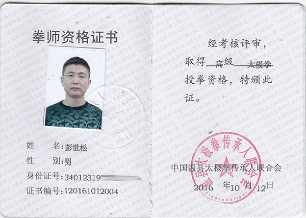曾被政府授予荣誉证书。工作中曾多次被评为先进个人。 热爱中国传统文化、并积极热衷于推广与宣传。 自幼好武,曾受过多位传统太极拳师传承与指导。娴熟掌握北京陈氏太极拳、杨氏太极拳。 追随一代宗师陈发科嫡孙、陈照奎独子陈瑜大师研习家传陈氏太极拳法。拳法至臻,深得一代大师陈瑜垂爱喜收为十九世嫡系之入室弟子。 2009年连云港第二届全国太极拳械暨武术与健身学术论坛交流大会中获得一等奖和二等奖。 |