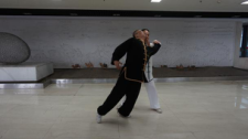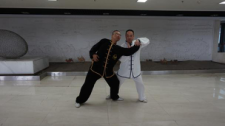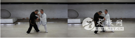 招术一,折拿虎尾 合步推手或散手实战,遇对方抓我右掌,欲绞臂锁拿;我梢节领劲肘定位,三节分家折腕转圜回抽,对方必被牵动引进,致对方掌背面予我,同时我左手迎上,与右手合握夹击,左手大拇指点按其“中白穴”附近,合劲反拿致对方疼痛难忍前跌。真是“一阴一阳护前胸,何惧狂夫抓手攻”【图1-1至图1-20】。 图1-1 图1-2 图1-3 图1-4 图1-5 图1-6 图1-7 图1-8 图1-9 图1-10 图1-11 图1-12