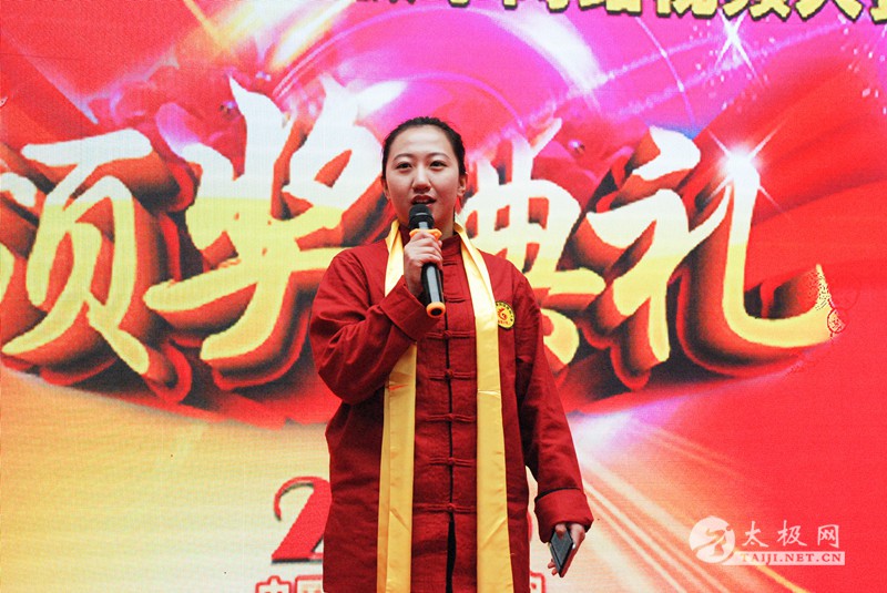 10月22日上午,2016年度“最美太极人”“最美太极团队”命名仪式于太极拳发源地温县陈家沟太极拳文化国际交流中心举行,命名仪式在第二届国际太极拳网络视频大赛颁奖典礼期间同步举行,“最美太极人”、“最美太极团队”的评审以国际太极拳网络视频大赛为基础,通过太极网举办的视频大赛寻找发现优秀太极拳传播者,由国际太极拳网络视频大赛组委会、温县太极拳传承人联合会、太极网全媒体联合组成专家评审团进行审核筛选,旨在表彰在2016年度为太极拳传播和推广有较为杰出成就的先进个人和集体。 嘉宾席 嘉宾席 嘉宾席 温县县委常委、统战部部长郑爱珍 焦作市文化馆馆长、焦作市非物质文化遗产保护中心主任王波 太极拳大师范鸿信 太极拳大师李树发 太极拳发源地温县县委常委、统战部部长郑爱珍,焦作市文化馆馆长、焦作市非物质文化遗产保护中心主任王波,太极拳大师范鸿信、李树发,太极网创始人兼总编刘洪奇等分别为获奖选手和组织颁发奖杯及荣誉证书。