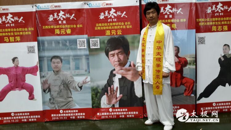 | 温元云,云南昭通市乐居人,中国武术七段,国家一级武术裁判,陈式太极拳第十二代传人(陈庆州入室弟子),云南省武协委员,昆明市武协副会长,云南龙俊极拳研究会会长,云南龙俊传统太极武术馆馆长、总教练。暑著有,(邹家拳武术精典套)(论太极拳外宣翻译)(云南武术精英论坛)。多年来所带弟子参加国际武术比赛,云南省武术锦标赛,获近百块金牌。在国际传统武术赛中,被评为《武术杰出推广人士》。 |