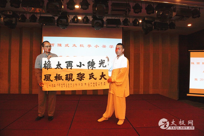 (太极网西安报道)11月6日,陕西陈式太极拳小架学会成立三周年庆典暨2016年度工作总结大会于西安名都大酒店隆重举办。现场大咖云集,陕西太极拳界相关人士欢聚一堂,陕西武术协会有关领导及太极拳发源地温县的嘉宾们到场祝贺。 嘉宾 嘉宾 出席活动的有特别嘉宾有陕西省武术协会副秘书长、陕西省段位制推广委员会副主任张世昌,陕西省武术协会副秘书长吴颖锋、佛教律宗祖庭净业寺住持本如法师等。 来自太极拳发源地温县陈家沟的陈氏太极拳小架领军人物陈伯祥及陈家沟陈伯祥拳术研究会会长陈春生一行,太极网创始人、温县太极拳传承人联合会主席刘洪奇先生一行出席庆典。太极拳大师陈全忠、李树发、陈凤英、陈东山、王胜利,太极拳名家职永成、刘启民、王宗保、范张峰、张旭东、王贵兰、崔常青等纷纷莅临现场。 陈献忠讲话 陕西陈式太极拳小架学会陈献忠会长作了学会一年来的的工作报告,与大家共同分享了陕西陈式太极拳小架学会近年来的成长历程与成果。 吴颖锋致辞 本如法师讲话 陈东山讲话 吴颖锋为本次庆典致辞,向陕西陈式太极拳小架学会三周年表示祝福,对学会为陕西省太极拳传播推广工作所作出的贡献给予了充分的肯定,同时感谢陈献忠会长为学会的发展所作出的努力。本如法师、陈东山等发表讲话,祝贺陕西太极拳小架学会成立三周年,希望学会为太极拳的传播做出更多的贡献。 陕西陈式太极拳小架学会成员代表集体太极拳表演 李树发太极拳表演 王胜利太极拳表演 陈春生太极拳表演 本如法师表演 职永成太极拳表演 弟子代表表演 弟子代表表演 庆典表演环节,学会成员代表带来了精彩的太极拳集体表演。李树发大师、王胜利大师也登台献技,引来现场阵阵喝彩。当代太极拳名家职永成进行了太极拳综合套路演示,让人大饱眼福。陈献忠及王胜利老师的弟子代表们分别带来太极拳表演。最后,陈献忠会长登台表演太极拳,将庆典气氛推向高潮! 嘉宾赠送书法作品展示 嘉宾赠送书法作品展示 陈献忠会长表示,十分感谢亲临庆典的领导和嘉宾们。国宝太极尚中庸、贵和蔼、道阴阳、依仁义,外有清风流水之柔润、内聚精神意志之浑圆,陕西陈式太极拳小架学会将继续推进陈式太极拳小架在陕西地区乃至全国的传播推广工作,为太极拳的传播贡献力量! 责任编辑:太极网陈超 |