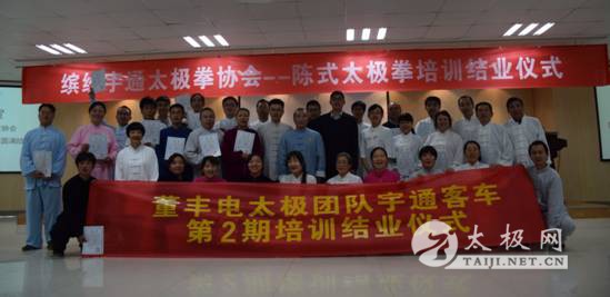 (太极网报道)光阴荏苒,日月如梭,董丰电太极团队宇通客车集团第二期太极拳培训自2016年3月开始,经过近8个月的学习,于2016年11月10日在宇通客车厂举行第二期太极拳培训结业仪式。本次培训人员全部顺利通过结业考评。 培训期间为了丰富学员的太极拳学习历程,董丰电老师组织了多次太极拳相关的社会活动。4月初,带领培训人员,参加“春天里我和大师相约陈家沟”活动,并参与祭拜太极拳先祖及河洛文化的学习。5月份,参加郑州“百城千场太极公益大讲堂”启动仪式活动。在培训期间,选拔优秀的学员参加第七届中国陈家沟太极功夫精英赛及国际性太极拳比赛,并取得优异成绩。 第二期太极拳培训让更多的太极拳爱好者加入董丰电太极团队,融入到太极拳学习氛围中,通过学习,对太极拳的文化有了更深的了解,把人的身心健康、人生哲学连在一起;健身养生、生活情趣融为一体。大家通过太极拳的学习不仅修炼了自身的精、气、神,还通过太极哲学更好地指导自己的生活及发展。 首先宇通太极拳协会会长王林杰先生对2016年协会有关活动及培训情况做了总结发言。 接着董丰电老师及学员一起,端心正意、肃整衣冠,向历代太极拳先师行合掌礼并师生互敬抱拳礼。 随后董丰电老师介绍了本次结业仪式的评判标准,并祝愿大家能顺利结业并取得优异的成绩! 学员考评中。 给学员颁发结业证书。 董丰电老师祝贺大家顺利结业,并祝愿学员们再接再厉,把太极功夫再上台阶! 最后,董丰电老师与协会相关领导及结业的学员们一起合影留念! 责任编辑:太极网同娇 |