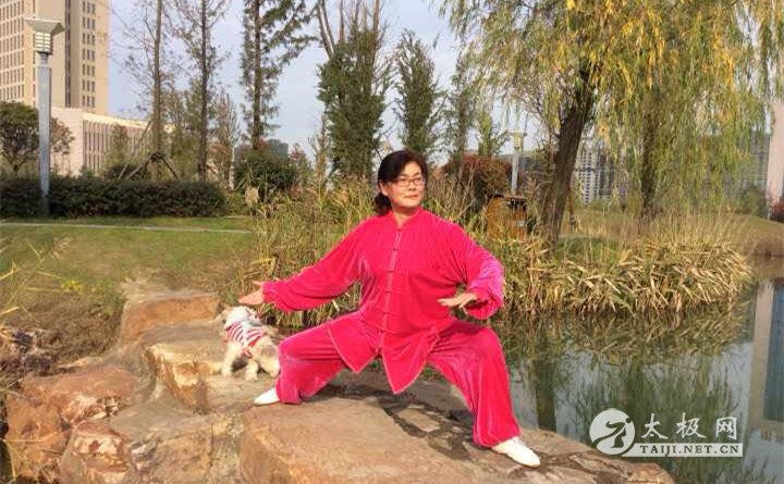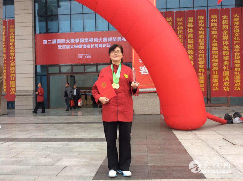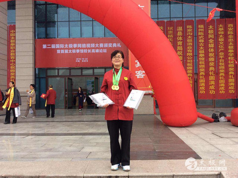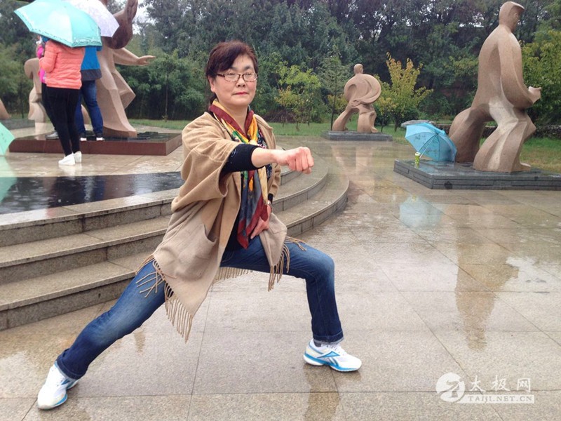 与邻里好友共练太极,因照顾孩子中途间断,同样是因为孩子,又重新步入太极殿堂。这是一位尽职尽责的伟大母亲,也是一位对太极拳有着深厚感情的太极人,她的太极拳不仅仅是自己在练,现如今,她所肩负的不仅仅是孩子的希望,还有她身边众多的太极拳爱好者们共同的希望,希望她可以把自己的太极拳练的更好,从而带领大家共同进步,一起走上光明的太极之路。这位自学成才的太极人应邀出席了第二届国际太极拳网络视频大赛颁奖典礼,今年是她首次参加这项比赛,她精湛的拳技为她赢得了大赛的一等奖,而她在当地积极传播太极拳的高尚行为则让她得到了由大赛组委会和温县太极拳传承人联合会颁发的“最美太极人”称号,她就是2016年度“最美太极人”张孝荣,太极网栏目组借此良机对其进行了专访。 张孝荣在颁奖典礼现场 张孝荣起初接触太极拳得益于她的一位好邻居。这位邻居邀其一起学习太极拳,于是张孝荣就跟着邻居一起学了一套42式太极拳。那时的张孝荣又要工作,同时还要照顾年幼的孩子,所以也只是抽时间学习了一些套路,得空便练一练,不够系统,也谈不上精通,再加之时间实在是紧张,一段时间之后便中断了习练。 时间一晃来到了2005年,张孝荣的孩子考入中国科技大学,求学期间成绩优异,于是便想出国留学,继续深造,美国学校比较考究中国留学生德、智、体等全方面素质,而太极拳作为中国传统武术的一种,因其在全球广泛的传播和享誉全球的知名度,被算做一门'体'分,因此孩子请求张孝荣一定要好好学太极拳,等放假了要教自己。孩子的请求,让做母亲的张孝荣无法拒绝,一直潜藏在心中的那份对太极拳的热情也再次被激发出来。于是,张孝荣带着孩子的希望,满怀对太极拳的热爱重新出发,再一次开启了自己的太极之路。 张孝荣在太极拳祖祠 阴阳石前练阴阳 虽然有热情,但练拳之路何其辛苦。张孝荣每天早早的赶到离家最近的晨练地点,寻找着可以帮她重新踏上太极之路的领路人,终于她的目标落在了一位鹤发童颜的老者身上。之所以选择他,是因为这位老人的太极拳于其他人相比更加的流畅,水平也较高。张孝荣也不犹豫,直接上前标明来意,希望可以得到老人的帮助,教自己练拳,老人十分爽快的答应了她,同时又告诉张孝荣:“我打的不是很标准,你得回家多看看太极拳教学光盘。”得到指点的张孝荣一边跟着老人学习太极拳,一边到书店购买教学光盘,无论是杨式24式、42式、48式太极拳,还是32式、42式、武当太极剑,她一点点的看,一招一招反复跟着光盘中的画面习练,早上跟着老师学习,晚上回家对照光盘。通过这样的方式,张孝荣顺利的把杨式24式、42式太极拳完整学习完,之后将其他的套路全部自学完成。 说起自学太极拳,张孝荣提到,对于初学者来说,如果选择教学光盘的话她建议购买李德印老师的太极拳教学系列光盘。李德印老师的教学光盘对于一个初学者来说,非常好,它由点到面,由浅到深,方方面面表述的淋漓尽致,在看光盘时,边学边记录,遇到难的不懂的,反复看,细心琢磨,然后对着自家的穿衣镜模仿老师的动作,多对照,多比较,发现问题,解决问题,一定能练好。2008年起,张孝荣开始一边自学一边教身边的亲朋好友练拳,她也在这种学教结合的过程中,不断完善自己,一点点的提升自身的太极拳水平。张孝荣提到,每次给朋友们上课前,她都要仔细研究一下李德印老师的光盘,她发现,每次看都会有新的体会,再把这种体会分享给朋友们,让大家共同感受太极拳一招一式间的阴阳变化,虚实转换,和朋友们一起领悟太极拳的精华,提升太极拳水平。 张孝荣常说:“四海之内皆兄弟,天下太极是一家。”她虽然未曾拜师,但这并没有影响她追求太极拳的更高境的热情。张孝荣经常在网上看名家表演,收集一些历年来冠军的视频和资料,在结合自身习练过程中的感悟,和名家动作一一比照。近年来,张孝荣经常走出家门,在全国各地拜访良师,结识益友,吸收各流派太极拳精华,博采众家之长,这让她充分认识到了太极拳的博大精深,更加深刻的体悟到了太极拳文化的源远流长。 对于如何练好太极拳,张孝荣有着自己的看法,她认为要学好太极拳,必须具备三点:一是天赋,二是刻苦勤奋,三是明师的指点。尽管张孝荣不曾拜入任何一位大师名家门下,但在她的太极之路上却有着有一位“名师”为其指点迷津,这位名师不是别人,正是张孝荣的老公。据张孝荣描述,自己的老公可能在太极拳方面没有多大的造诣,但他明晰世事,对很多事物都有着独特的见地,虽不会画画却能赏画,虽不会唱歌,但却从不性影响他欣赏音乐,对于太极拳,虽然他不会练,却能在旁边观看时一针见血的指出张孝荣的问题所在。张孝荣老公的“火眼金睛”不只一次的为她指点习练过程中出现的问题。张孝荣说,她老公曾经两次指点自己,每次都让其受益匪浅。第一次张孝荣刚学太极不久,她老公不经意间看了她打的太极拳,回家后就对张孝荣说:“你每次在锻炼的时候,都要向在表演一样,把每个动作向观众交代清楚”。针对这句话,张孝荣进一步了解每个动作的攻防含义以及每个动作之间的虚实转换,认真分析,仔细研究,改善了习练过程中很多动作不到位,身架不正的问题。第二次是,她老公在电脑里看了她的太极剑表演视频,看后对她说:“你的剑有的动作还有一顿一顿的感觉,不够流畅