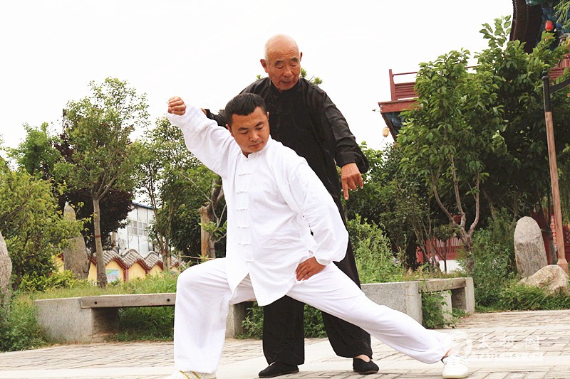 自幼喜爱武术,6岁便开始学习长拳。通过母亲接触到太极拳,起初不以为意。一部《太极宗师》彻底颠覆他对太极拳的看法,加之学习的柔道理论,深深理解了太极拳刚柔并济的真谛,从此爱上了这门高深莫测的传统武术。与太极拳结缘的一波三折让他一经习练便不可自拔,2016年首次参加国际太极拳网络视频大赛,一举斩获大赛一等奖,其精湛的拳技和尊师重道的高尚武德也为其赢得了大赛组委会和温县太极拳传承人联合会的青睐,联合为其颁发了“最美太极人”的称号。他正是2016年度“最美太极人”张峰,在今年10月份举行的颁奖典礼上,太极网栏目组也对他进行了专访。 张峰,自幼习武,6岁起学习长拳,并进入开封体校学习柔道。少年时期扎实的武术基础让张峰的太极之路有了很高的起点。张峰说,小时候经常会在龙亭湖畔练习长拳,自己的母亲是一位太极拳爱好者,那时候也经常和一群人也在龙亭湖畔跟着一位老师学习太极拳。当时,张峰也会观察母亲和那些人所练的太极拳,他感觉动作很柔很慢,与自己练习的长拳反差很大,因此他以为太极拳是一种舞蹈或是体操。带着些许好奇,张峰询问母亲,母亲说他们所练的是太极拳,是中国传统武术的一种,太极拳是一种刚柔相济的内家拳。当时,年幼的张峰尚且不能理解何为“刚柔并济”,直到他学习了柔道,掌握了一些以柔克刚的技巧之后,才慢慢的对母亲说的刚柔并济有一些了解,但依旧未能真正的对太极拳产生兴趣。张峰19岁那年,由吴京主演的电视剧《太极宗师》将太极功夫搬上荧屏,看了电视剧里的演绎,张峰认识到自己以前的想法是多么的幼稚。再结合自己所学的柔道理论分析认为,太极拳不仅与之相通,陈式太极拳的缠绕折叠,松活弹抖,四两拨千斤的独特技能更展显出我中华武术的魅力。从那以后,张峰深深的迷恋上了太极拳,购买了许多太极拳教学光盘来学习。后来,张峰应征入伍,但是他对太极拳喜爱和向往的烈火一直在内心中燃烧着。 退伍之后,张峰一直想寻找一位老师系统的学习太极拳拳理拳法,提升自己的太极拳水平。2010年初,一个偶然的机会,张峰在路边的一个花园看到一位老者在习练太极拳,老者就在那里一招一式的习练,张峰竟看的入了迷。虽然看上去年事已高,但是老者的动作依旧舒展大方,他的拳快慢相间,刚柔相济,连绵不断,一气呵成,外有景,内有情,让人有一种看不够的美感。遗憾的是,那时候张峰有急事要办,不能长久停留,事情办完之后,他立即返回,却不见了老者的身影。回家之后,张峰在网上寻找当地的太极拳教学点,通过搜索,看到了范鸿信大师的信息,看着大师的教学视频,行云流水的身影渐渐的和张峰脑海中那位老者渐渐重合,张峰心中不禁想:“难道自己看到的那位老者就是范鸿信大师?”有了这样的想法,张峰第二天一早就赶到了那个花园,幸运的是,那位老者依旧在那里习练太极拳,张峰赶忙上前,走进一看,原来这位老者真的是范鸿信大师。当时张峰在旁边等老者一套拳打完之后向他表示了想学习太极拳意愿,老者欣然应允,张峰的太极之路由此而始。 张峰说,他第一次见到范鸿信大师就回想起小时候练长拳母亲学太极拳的场景。范老师慈祥和善的面孔,让张峰心中觉得好像小的时候就见过这位老师,让他隐隐约约有一种似曾相识的感觉,张峰相信这就是缘分!那一刻,张峰就暗暗决心拜范老师为师。也就从那天起,张峰开始追随范鸿信大师学拳,经过一段时间的学习,范鸿信大师对张峰的人品、武德等进行了全面的考察,最终收其为徒,张峰也顺利成为了范鸿信大师的入室弟子,正式踏上了太极传承之路。 张峰与师父范鸿信大师 在跟随范鸿信大师习练太极拳的过程中,张峰说师父对他的严苛要求让他印象深刻。师父传授每套拳,每套器械,都是一招一式抠架子,一层一层讲拳理,认真执着,毫不保留。烈日炎炎,师父时常领着张峰练完整个套路,一边示范一边讲解,即使汗留夹背,口干舌燥,也要让他熟练掌握其中要领。每次张峰总是不忍看到师父如此辛苦,总要求自己练习,希望师父能够休息,而他也总是微笑着说:“我没事,我们继续!”白雪皑皑,师父不畏严寒,哪怕霜水打白了他的双眉,而他却浑然不觉,依旧认真的传授拳法。哪招哪式张峰练的好,范鸿信大师会微微一笑;哪个动作拳理不明,他总是一遍又一遍的示范讲解。日复一日,年复一年,无论春夏秋冬,师父用爱心、耐心、细心传授武艺的同时,令张峰更为感动是师父的武德,是师父对太极拳的忠爱,对传承的贡献!师父的一言一行都为他的弟子们做了表率,他的一举一动都深深地刻印在了张峰的心中!范鸿信大师平时对张峰的要求讲的最多的那就是坚持,张峰也时刻牢记师父的教诲,无论平时有多忙,无论身在何处,每天都按照师父讲的要领来练习。对于师父讲的每一字、每一句、示范的每个动作,张峰都会非常用心的去记,独自反复练习,如果他不这样去做,张峰连自己那关都过不去,更对不起师父对他的栽培。 范鸿信大师为张峰指导拳架 谈及多年练拳的心得,张峰引用自己师父范鸿信大师常说的一句话:“一层功一层理,不要去模仿任何人,更不能急于求成。在练拳中摸出自己的劲,架子对、拳理通、呼吸明,循序渐进、坚持不懈,拳打万遍自显神通。”张峰一直将师父这句话做为练拳的指明灯,静心沉气地一层层提升。在他练拳的经历中,体