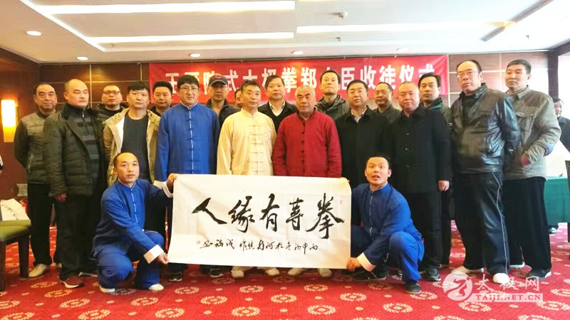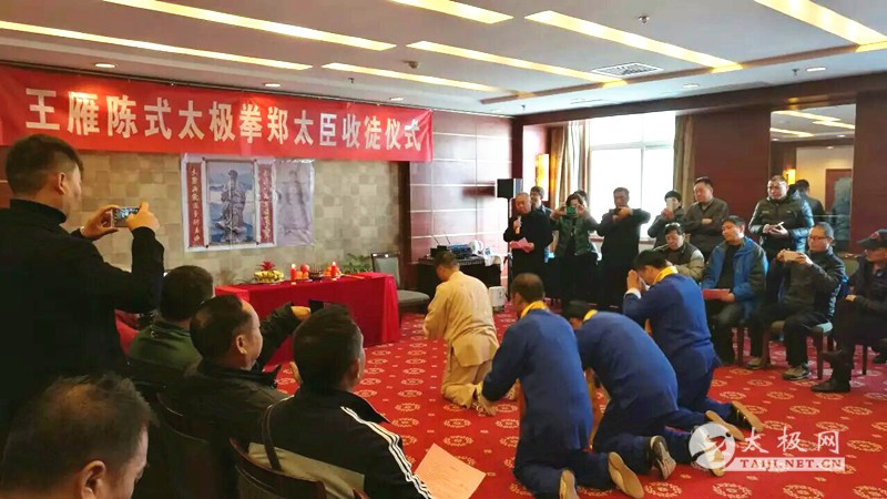 (太极网焦作报道)2016年11月26日,陈式太极拳第10带传人,当代太极拳名家郑太臣收徒仪式在焦作山阳建国饭店隆重举行。来自山东沂源的张怀军,淄博的段美光,荷泽的王旭望三位弟子正式拜入郑太臣老师门下。焦作市武协主席张志远,市体育局太极拳科科长范小波,荷泽市体育局副局长房惠民以及太极网创始人、温县太极拳传承人联合会主席刘洪奇等到场祝贺。陈氏太极拳第八代传人,有“铁捋”之称的太极拳一代宗师王雁之孙王长江作为本次师徒仪式的鉴证人出席活动。 刘洪奇主持收徒仪式,郑太臣老师带领三位弟子向太极拳始祖及历代宗师敬香,行跪拜礼,仪式太极拳代代传承,薪火不断,同时也是告诫新入门弟子要礼敬先师,尊敬师门前辈,时刻保持一颗敬畏心,潜心习练太极拳,成为一名合格的太极拳传承人! 王长江题写拜师贴 随后,弟子依次向师父敬献拜师茶,递交拜师贴,行拜师礼。郑太臣亲自为弟子披挂太极拳传承人绶带,并向弟子训话,他告诫三位弟子,要恪守门规戒律,遵从师门教导,认真习练太极拳,领悟太极拳文化,不与人争强斗狠,不议论其他流派短长,做一名对纯粹的太极人,为太极拳的传播和推广贡献自己的力量。 弟子们也表示,定会铭记师父教诲,练好太极拳,做好太极人,为太极拳的传播和推广贡献自己的全部力量。郑太臣老师向赶来参加拜师仪式的领导和嘉宾表示感谢,同时他表示,自己将会继续全力以赴教好弟子,将他们培养成为传播太极拳的坚实力量,为太极拳的推广做出自己的贡献! 责任编辑:太极网陈超 |