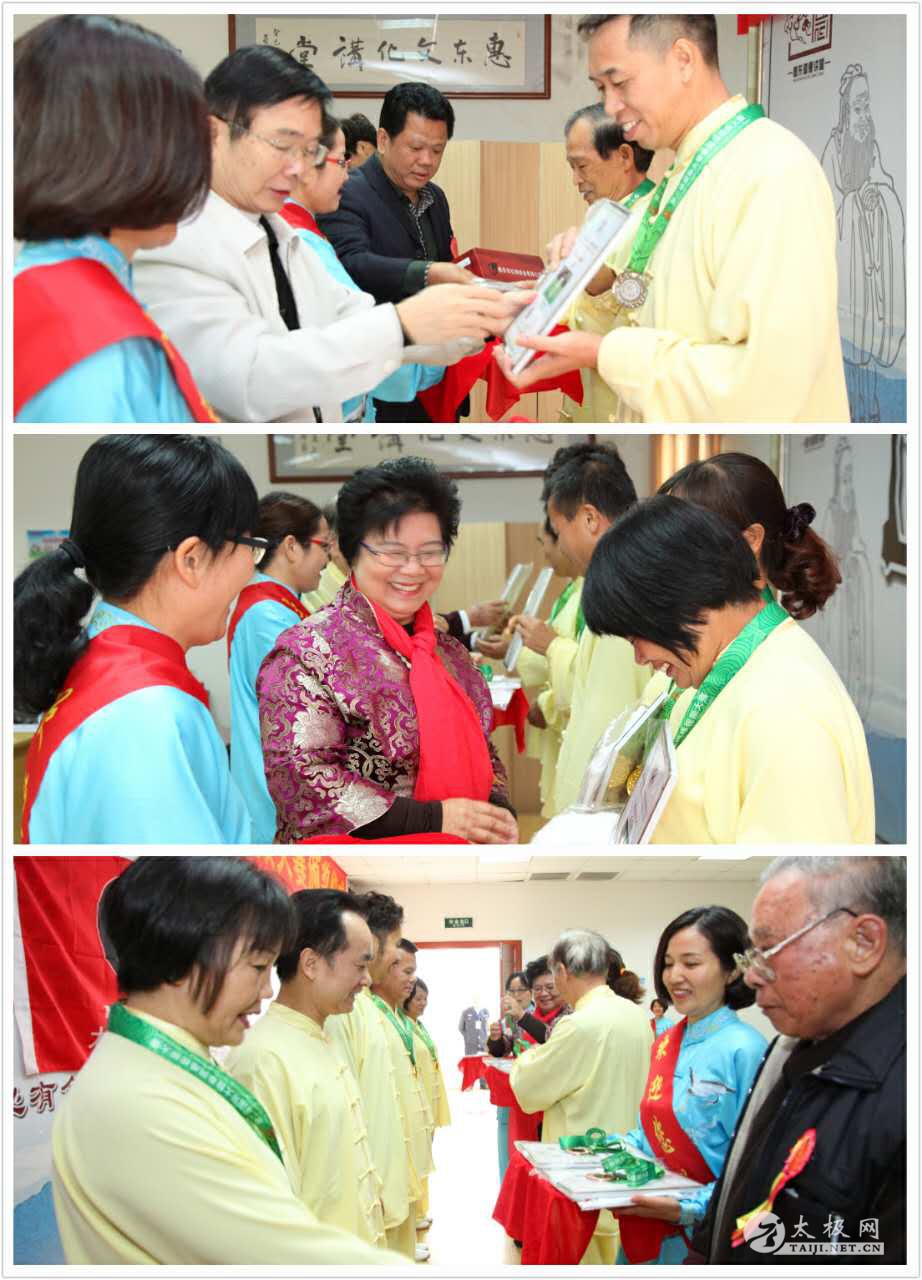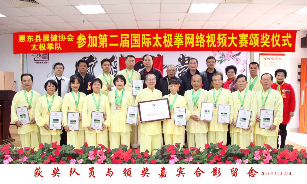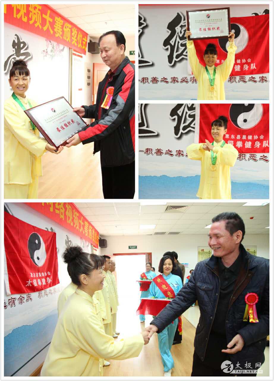 | 2016年11月27日,惠东晨健太极拳协会隆重举办协会成员参加第二届国际太极拳网络视频大赛的成绩表彰大会及颁奖仪式,此次颁奖仪式经过精心策划准备,活动受到了当地有关领导高度重视,协会全体成员积极响应。 出席此次颁奖仪式的嘉宾有: 惠东县老体协常务副主任吴伟光 惠东县体育局副局长朱志光 惠东县文广新局副局长钟土清 惠东县老体协秘书长郭建民 惠东县体育局办公室主任宋培如 惠东县木兰拳协会会长罗巧兰 惠东县华侨城协会会长黄琼 惠东县亮点摄影馆陈品文(摄影录像) 颁奖仪式现场,晨健太极拳协会会长周玉琪首先介绍了晨健太极拳协会参加第二届国际太极拳网络视频大赛的情况及成果,并宣布获奖队员名单,随后颁发相关奖品。据悉,第二届国际太极拳网络视频大赛,惠东晨健太极拳协会选送了10个视频作品参赛,共荣获了一个一等奖、三个二等奖、四个三等奖、两个风采奖,成绩骄人,可喜可贺。 仪式上有四位获奖队员发表了获奖感言,他们纷纷表示此次获奖不仅是对自己练拳的肯定,更是鼓励了他们坚持锻炼太极拳的信心,今后他们将继续努力,传承和传播太极拳。仪式最后由老体协常务副主任吴伟光讲话,他对晨健太极拳协会此次大赛收获给予了高度的评价,并寄予期望。 惠东晨健代表队唐艳华表示,感谢太极网为广大拳友提供了这个交流互动平台,让拳友们收获满满。明年,她将继续发动协会成员积极参赛,争取更好的成绩和表现。 责任编辑:太极网李超 |