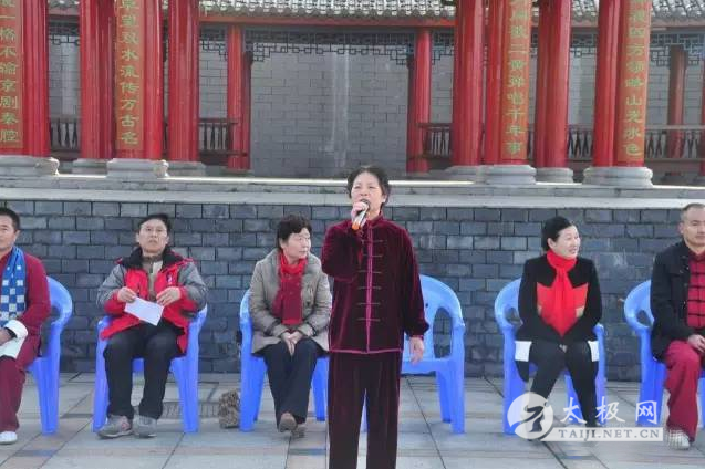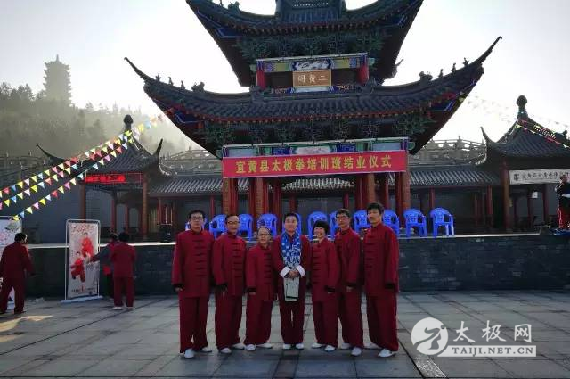“戏生大雅日月同歌二黄弹唱千年事”“阁立高风云山卓望观水流传万古名” 这是宜黄二黄阁正中东西两柱挂着楹联牌匾。宜黄是“二黄腔”的发源地,这种声腔,后来被誉为京剧二黄腔的“始祖”,成为江西大型古典剧种之一,也成为研究我国戏曲演变轨迹的标本,宜黄戏被正式列为首批国家级非物质文化遗产,二黄阁由此得名,二黄阁位于卓望山脚下,分有上下两层宽敞广场,大气磅礴。 冉永庆老师带领宜黄学员练拳 由宜黄县体育局、宜黄县太极拳协会主办的全县各企事业单位太极拳培训班结业仪式。图为宜黄县体育局局长、体育总会会长李讯华讲话 2016年12月17日的清晨还是浓雾紧锁寒气逼人,到了九点半钟汇演开始的时候却已是艳阳高照晴空万里,培训班的学员们穿着红色太极服让整个二黄阁广场充满了活力以及健康喜庆的气氛。宜黄县近五十名学员在陈家沟陈式太极拳第十二代传承人冉永庆老师的精心指导下,经过十余天的勤学苦练,圆满地完成了陈式太极拳二十六式的学习,学员们都觉得太极拳的动作更规范了,水平也得到了明显的提高。今天就让我们一起来欣赏冉永庆老师带领他的培训班学员们在二黄阁上演的这场宜黄太极拳培训班结业汇演的太极大戏。 市太极拳协会艾峰主席致词 宜黄县太极拳协会主席徐小英讲话 市太极拳协会管理团队受邀观摩 宜黄县太极拳协会副主席赵峰在汇演中 宜黄县消防大队长戴庆中 宜黄县体育局办公室主任黄春花 同仁、博大医院廖良华院长 看这架势都已经得到冉老师的真传 冉老师休息时间还在跟学员讲拳理 冉永庆老师与宜黄部分学员合影