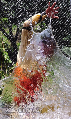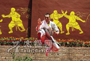 ①洋弟子表演中国功夫 ②禅武中心的学员进行击水表演 ③洋弟子在练习中国功夫