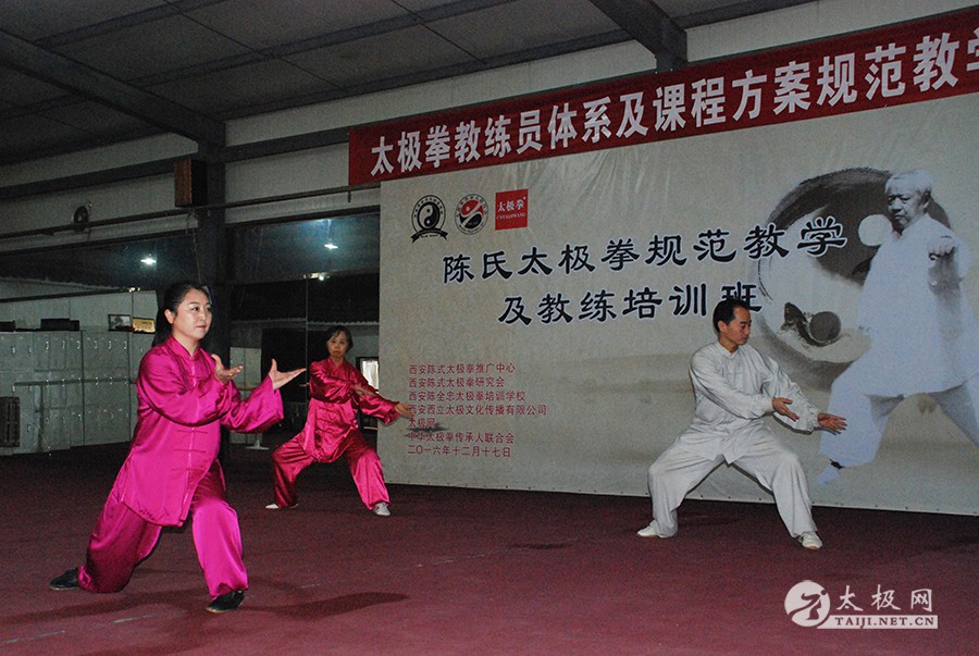 太极网12月26日讯 2016年12月25日,由西安陈式太极拳推广中心、西安陈式太极拳研究会、西安陈全忠太极拳培训学校、西安西立太极文化传播有限公司联合太极网(Taiji.net.cn)以及中华太极拳传承人联合会等共同举办的陈氏太极拳规范教学及教练培训班于西安陈全忠太极拳学校举行结业考核仪式,二十八名学员圆满完成为期两周的规范教学培训班,并通过结业考核,取得太极拳教练员证书。 嘉宾席 嘉宾席 出席本次培训班结业仪式的嘉宾有:国际太极拳大师陈全忠,原中国人民解放军空军大校孙树永,陕西省名人协会秘书长王树潮,太极网创始人刘洪奇先生一行等。培训班结业考核评委会由崔铁成担任主任评委,郑玉安、柳安宁、郭茹、成丽娟、孙健等担任评委,结业考核公平公正公开进行。 评审席 活动组委会主任、西安陈全忠太极拳学校校长陈西立为活动致开幕辞,陈式太极拳第十三代传人、陈全忠大师外孙女张玉洁主持结业考核活动。专家评委、现场嘉宾及诸多太极拳爱好者们共同欣赏了由培训班学员们带来的教学汇报展演,评委们针对学员们在表演中出现的问题进行了细致的分析和指点,并对他们的表现给予了充分的肯定和鼓励。 张玉洁主持结业考核活动 陈西立致辞 学员汇报展演 学员汇报展演 学员汇报展演 学员汇报展演 学员汇报展演 评委孙健现场点评 评委郭茹现场点评 评委成丽娟现场点评 主任评委崔铁成现场点评 结业考核活动圆满结束后,刘洪奇应邀讲话,他对本次培训班取得圆满成功表示祝贺,充分肯定了此次培训班对陈式太极拳规范化教学的重大意义:古语有云“无规矩不成方圆”,教练员的素质、水平直接影响太极拳的教学质量和传播质量,此次西安陈全忠太极拳学校针对教练员队伍所开设的规范教学培训班将积极促进陈全忠太极拳体系的传承和推广。 九十三岁高龄的陈全忠大师作总结发言,他向通过本次培训班顺利取得教练员资格的学员们表示祝贺,老人家引用习主席的一句话“打铁还需自身硬”告诫学员们,要以虔诚的心和严谨的态度认真做好太极拳的教学和传播工作,为太极拳的推广和普及做出更多的贡献。 刘洪奇发表讲话 陈全忠大师讲话 活动最后,通过审核的学员们依次上台领取了由中华太极拳传承人联合会授予的太极拳教练员资格证。学员纷纷表示,一定会继续努力,学好太极拳,教好太极拳,为太极拳的传播和推广贡献自己的力量。 学员领取教练员资格证 学员领取教练员资格证 从左至右依次为陈西立、陈全忠、刘洪奇 陈西立表示,本次培训班旨在规范太极拳教学,进一步加强太极拳教练员队伍建设。活动的圆满成功离不开社会各界的支持和帮助,感谢今天到场的嘉宾和领导。今后,他将继续带领陈全忠太极拳体系把太极拳规范教学及教练员培训活动常态化,并不断完善培训及奖励机制,提高规模,培养更多的优秀教练员,为太极拳传播注入源源不断的动力,为太极拳事业的发展做出应有的贡献。 责任编辑:太极网陈超 |