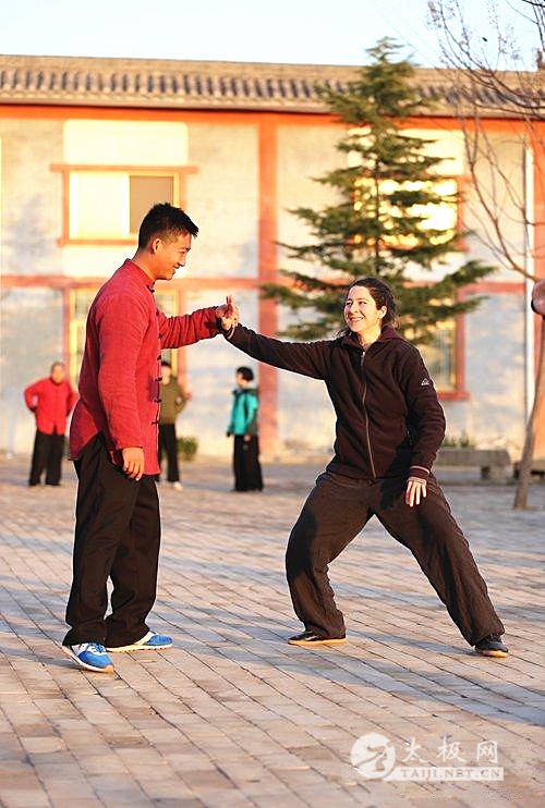 圣诞节前夕,在太极拳发源地——河南温县陈家沟学拳的“洋弟子”们纷纷回国了,而希腊姑娘罗莎(Roza Maragopoulou)却选择继续留在陈家沟学太极。出生于希腊雅典的罗莎,今年38岁,学太极拳已有6年。罗莎,自幼体弱,她爱好运动,但青年时期患上了一种神经过敏的病症,让她全身疼痛难以忍受。她尝试过练习瑜珈、空手道、舞蹈等都不见效。 结缘太极后让她的生活有了转机。2010年她在英国留学读博士期间,偶然跟随一位英国拳师上了一节太极拳课,她感觉内心平静、舒服,生活似乎瞬间变美好了。让罗莎欣喜的是,习拳一段时间后,她感到体质改善了,疼痛缓解了。自此,学练太极拳便成为了她的生活方式。 2014年,她从家乡奥林匹克运动会的发源地——雅典慕名来到太极拳发源地陈家沟,在陈家沟国际太极院拜师学艺。近三年来,她每年都要来到陈家沟专心学拳几个月,目前她学了太极拳老架、新架和器械,但她最喜欢练习太极拳老架。