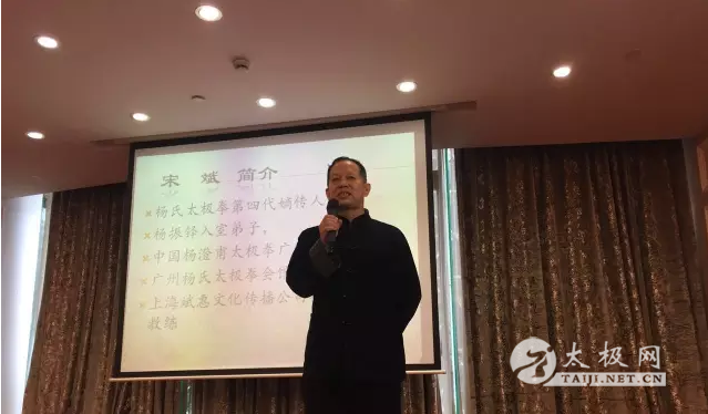 步履匆匆,只为太极-记宋斌老师上海行PART 1 杨氏太极拳公益宣传活动 (太极网报道)12月24日,宋斌老师应邀参加杨氏太极拳公益宣传活动,为杨氏太极拳在上海的发展传播造势。参会的还有杨振河老师、石月明老师、杨宗杰老师、刘嘉慧老师等。活动吸引了许多太极爱好者前往,热闹非凡,意义深远。 嘉宾席 杨宗杰老师发言 宋老师与师妹刘嘉慧老师、学生问世鹏共同表演太极拳 PART 2 上海斌惠学员年终考核 上海斌惠堂开业以来,已经陆陆续续开展了几期传统杨氏太极拳培训班,老学员一直坚持学练,新学员也一直在涌入。正值2016年末,宋斌老师在上海活动,特举办了学员年终考核,为大家近一年的学习画下一个圆满的句点。