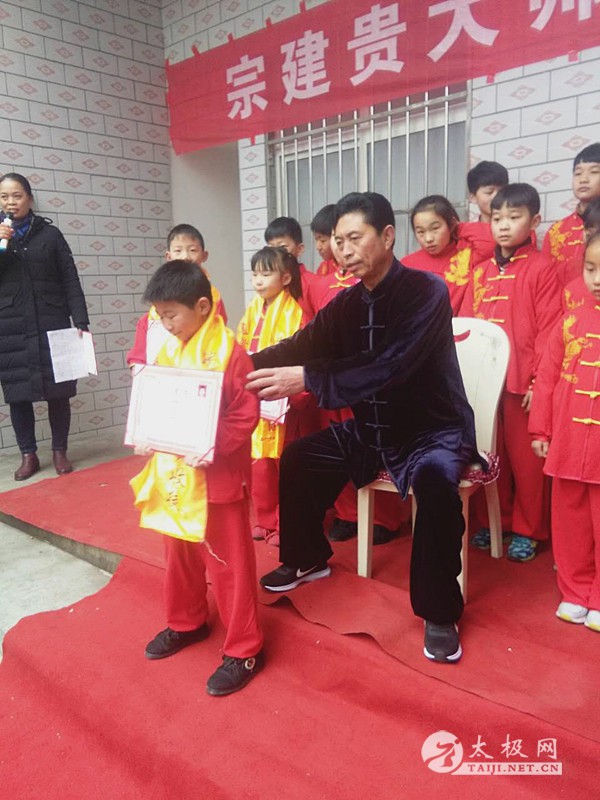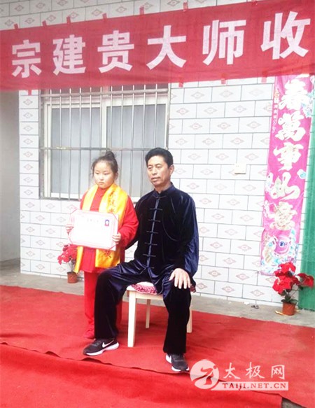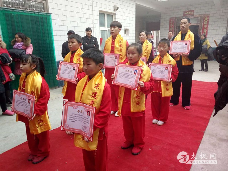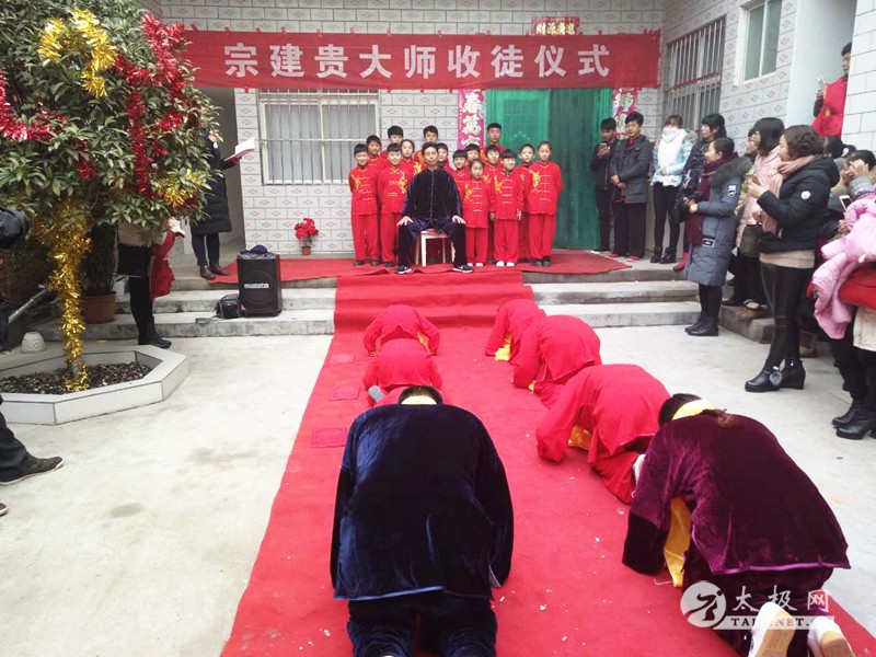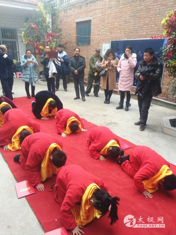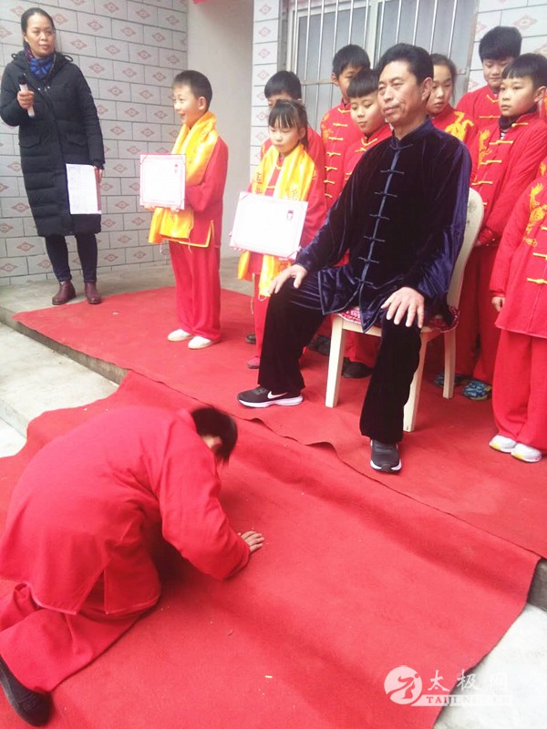 太极网1月6日讯 2017年1月1日,恰逢元旦佳节,太极名家宗建贵在新年第一天于河南沁阳喜收新徒,敲响了2017年的新年钟声!本次拜入宗建贵老师门下的弟子有:董懿萱、魏纬华、董继红、丁翔、牛天裕、徐青、陈炎彬、李书涵等,他们怀着对太极拳的热爱和对太极文化的向往拜入宗建贵老师门下,从此开启太极人生的新篇章,走上光明的太极之路,成为光荣的太极拳传承人! 宗建贵及其门下弟子 拜师仪式开始后,新入门弟子首先集体向宗建贵老师行跪拜礼,之后依次上前行拜师礼,递交拜师贴,师父回帖并为其颁发中华太极拳传承人证书,披挂传承人绶带,礼成后,弟子们再次向师父行跪拜礼,以谢师父传拳之恩,以示太极拳代代传承,薪火相承之意。 新入门弟子向宗建贵老师行跪拜礼 弟子依次上前行拜师礼 师父为弟子颁发中华太极拳传承人证书 弟子再次向师父行礼 新入门弟子 宗建贵老师向新入门弟子训话,希望他们能够恪守门规祖训,认真习练太极拳,努力学习太极文化,时刻以一名太极拳传承人的标准严格要求自己,争取早日成长起来,为太极拳的传播和推广贡献自己的一份力量。弟子们纷纷表示,谨遵师父教导,刻苦习练,认真学习,一定要练好太极拳,学好太极文化,早日加入太极拳传播的行列中来。 师父与弟子合影 师父与弟子合影 师父与弟子合影 拜师仪式结束后,宗建贵向广大太极拳爱好者致以新春的问候,并表示将会在新的一年中继续不懈努力,以沁阳宗建贵武院为基地,培养出更多优秀的太极拳人才,同时强化自身的太极拳修为,为太极拳的传播和推广做出更大的贡献,2017年更上一层楼! 责任编辑:太极网陈超 |