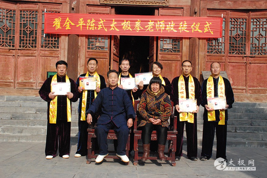 (太极网报道) 2017年1月8日,陈式太极拳第十一代传人翟全平开山收徒仪式于陈家沟太极拳祖祠内举行,本次拜入翟全平老师门下的有贺洪发、李新生、刘微、庞志强、王广龙、王连增等6名弟子。 陈一华 陈家沟陈氏家族理事会理事长陈一华主持翟全平老师收徒仪式,陈家沟陈式太极拳第十代传人陈启亮担任见证人。收徒仪式开始后,翟全平首先向太极拳祖师及历代宗师行礼、敬香。随后,新入门弟子依次上前向师父行拜师礼、递交拜师贴、敬拜师茶,师父回帖并亲自为弟子披挂中华太极拳传承人绶带,颁发中华太极拳传承人证书。 拜师仪式现场 弟子向师父行拜师礼 新入门弟子 前排从左至右:陈启亮、翟全平夫妇、陈一华 后排为新入门弟子 翟全平表示,在太极拳祖祠内收徒对自己来说意义重大,这是一份传承的责任,这份责任将会鞭策着自己继续为弘扬太极拳不懈努力,同时他希望新入门弟子能够恪守门规祖训,认真习练太极拳,为太极拳的传播和推广做出自己应有的贡献。最后,翟全平还向广大太极拳爱好者送上了新春的祝福,祝福拳友们新春快乐,阖家幸福! 责任编辑:太极网陈超 |
