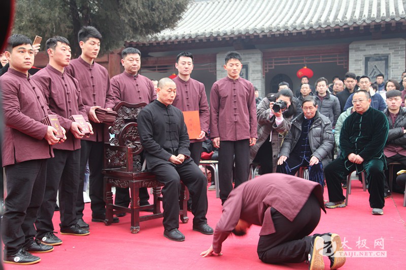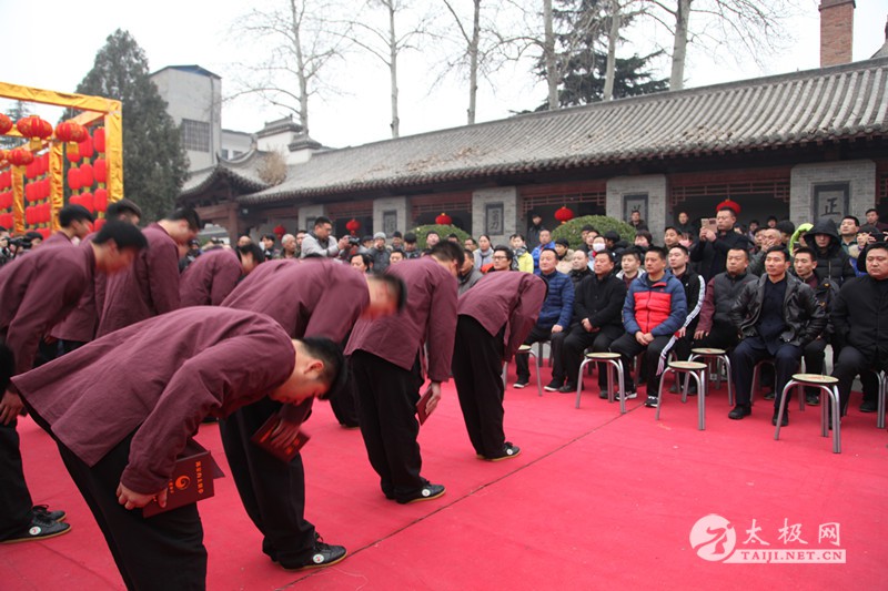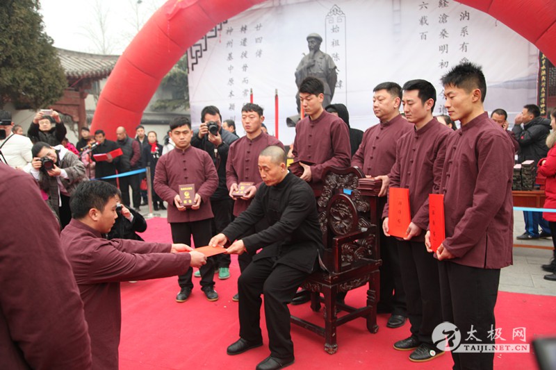 (太极网报道)2017年1月28日,农历正月初一,2017年陈家沟陈氏家族祭祖仪式暨太极名家陈自强收徒仪式于陈家沟太极拳祖祠隆重举行。在外辛苦传播太极拳文化,为陈式太极拳的推广做出突出贡献的拳师们回到了家乡,恭贺新春,共度佳节,陈家沟太极拳学校总教练、陈家沟陈氏太极拳协会秘书长陈自强也于当天举行了收徒仪式。 参加活动的陈家沟拳师 郑小飞、陈跃、徐鹏鹰、陈明、程旭震、程雪义、刘洪甫、刘新新、陈苏娟、闫子峰、牛嘉辉、原骏麟、王航、王祥瑞、魏继峰、胡志豪、薛博智、郑敬瑛、訾梦涛、侯爽、司马霄鸿、史增辉、王珂珂、张洪帅、李佳音、朱雨赫、席晓果、徐枫丽、杨凯凡、李韶青、乔春雨等31名来自全国各地的太极拳爱好者拜入陈自强老师门下,成为太极拳传承人。 新入门弟子 拜师仪式开始后,陈自强老师首先向太极拳始祖陈王廷铜像上香、行礼、敬酒,随后带领新入门弟子向始祖行礼。弟子们依次上前向师父行拜师礼、递交拜师贴,陈自强老师向新入室弟子颁发入室弟子证书。 陈自强向新入门弟子训话,告诫弟子们要恪守门规祖训,用心学习太极拳,时刻牢记自己身为太极拳传承人的使命,努力为太极拳的传播和推广做出自己的贡献。随后,弟子们向陈家沟的拳师,也是他们的前辈行礼致敬。 陈自强训话 拜师仪式结束后,太极拳大师陈小星以及陈氏家族理事会负责人等共同向入室弟子颁发传承书。 合影 现场太极拳表演 责任编辑:太极网陈超 |