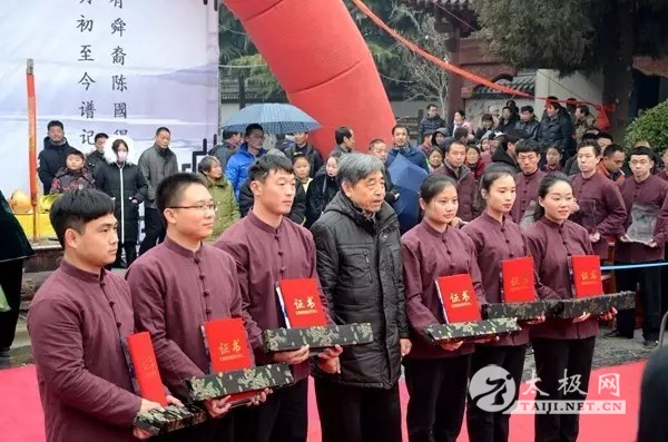 | (太极网报道)2017年1月28日,农历正月初一,陈家沟首批【陈氏太极拳正宗传人】评选仪式于陈家沟太极拳祖祠隆重举行! 由陈家沟家族理事会、陈家沟村委会、陈家沟陈氏太极拳协会评选出【陈家沟太极拳正宗传人】的人员分别是:陈长义、陈执经、陈东海、陈立法、陈立州、陈清环、陈瑞华、陈全意、陈全胜、陈占成、陈国强、陈涛、孙武、郑小飞、张彦飞、陈建强、陈大伟、陈相林、陈向坤、吴森、闫子腾、刘新新、王岩、赵艳芳、宋佳佳、陈苏娟、任明明、张恒义、刘凯、陈长峰、陈庆源。 他们中有年逾古稀的守业老者,有中流砥柱的中年,也有开创未来的青年,以初心为念,精武扬德,弘扬太极,在省、市、国家,乃至世界比赛的拳台上,取得金牌,等各种辉煌成就展现非凡风采。 以下是本次仪式的部分剪影: 陈家沟村村长陈景元同志为大家颁发证书 陈家沟陈氏第十九世太极拳守门人陈小星大师为大家颁发护身剑 【陈氏太极拳正宗传人】这个荣誉是对太极人多年贡献的极高肯定,也是为了正本清源,勉励他们立足陈家沟,从这里走向世界,齐心协力将太极拳推广到世界的各个角落,使陈家沟成为太极拳爱好者的朝圣之地!相信在拳友们的齐心协力下,太极拳今后的发展会越来越好!责任编辑:太极网安安 |