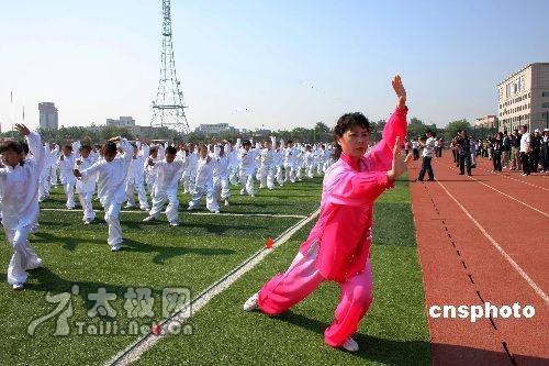 2009年5月23日,首届中小学生“太极拳”团体表演赛在河北沧州西体育场举行。会场上,近万名学校师生共同展现了气势磅礴的集体“太极拳”表演,为沧州这个古老的武术之乡增添了浓厚的武术气息。
