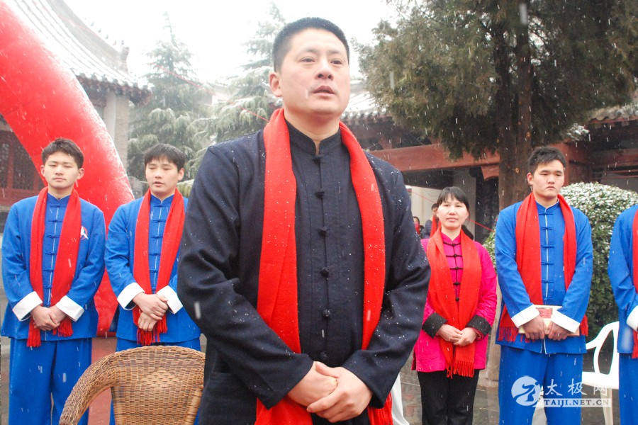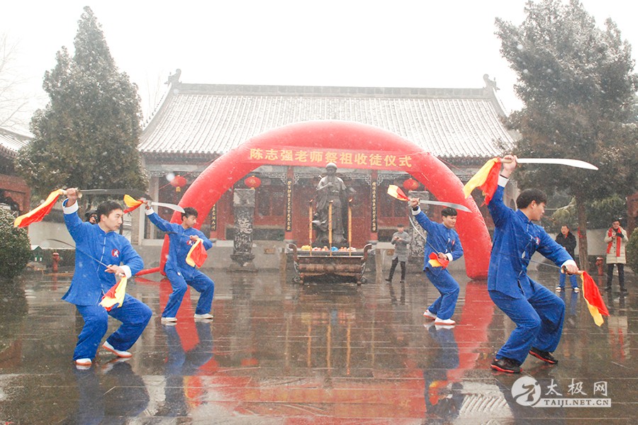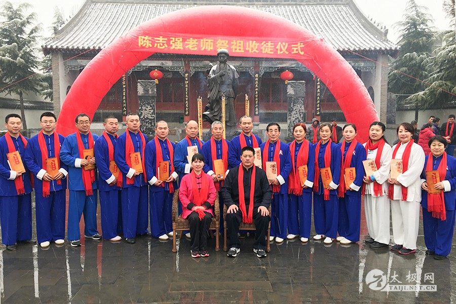(太极网报道)2月8日,陈家沟陈氏第十九世、陈氏太极拳第十二代传人,陈家沟太极拳“八大天王”之一、陈家沟太极拳研究会会长兼总教练、陈志强太极拳推广中心总教练陈志强老师率众弟子于陈家沟太极拳祖祠举行祭祖仪式,同时共有16名来自全国各地的太极拳爱好者也于今日拜入陈志强老师门下,正式成为太极拳传承人,他们分别是:宋得成、师学礼、周爱萍、赵建业、程晓、王红、李海博、刘蕾、路广灿、樊蕊、叶胜刚、孙宾、李涛、管丽、尼广辉、贾俊涛、周闻鹏。 仪式开始前陈志强老师领练太极拳 仪式前的太极拳器械及套路表演 出席本次活动的嘉宾有:温县宣传部副部长、温县太极拳武术文化管理中心主任王海昌,陈家沟景区管理局副局长任海林,温县体育局副局长牛化平,温县太极拳武术文化管理中心刘高杰,陈家沟村委主任兼书记陈景元,陈家沟陈氏家族理事会理事长陈一华。陈家沟太极拳“八大天王”张福旺、陈冲、陈大虎,陈家沟太极拳名家冉永庆、陈志伟、陈绍杰、陈冠军、陈三虎、辛强等作为本次收徒仪式的见证人也出席了本次活动。 出席嘉宾 拜师仪式由陈家沟陈氏家族理事会秘书长陈石岩主持。仪式开始后,陈志强老师首先向太极拳始祖陈王廷铜像敬香行礼,敬酒叩拜并宣读祭文。随后,新入门弟子依次上前递交拜师贴,行拜师礼,师父回弟子帖并颁发入门证书。拜师礼成之后,陈志强老师带领众弟子向太极拳始祖行礼,以示太极拳代代相传、薪火相承之意。 陈石岩主持祭祖拜师仪式 陈志强宣读祭文 拜师仪式 陈志强老师向新入门弟子训话,他希望弟子们能够戒骄戒躁,恪守门规祖训,用心习练太极拳、学习太极拳文化,成为合格的太极拳传承人,为太极拳的传播和推广做出自己应有的贡献。弟子代表在发言中表示,定当遵循师父教诲,学好拳、做好人,不辱师门,成为真正的太极拳传承人,为太极拳的发扬光大贡献自己的全部力量。随后,弟子们分批上前向太极拳始祖陈王廷铜像敬香行礼。至此,拜师仪式圆满礼成。 陈志强训话 弟子代表发言 陈景元发表讲话,他向远道而来的太极拳爱好者们表示欢迎,并祝贺今天拜入陈志强老师们下的弟子,恭喜他们得遇名师,希望他们能够在陈志强老师的教导下传承和发扬好太极拳,为太极拳的推广和传播注入新的更加强大的力量。王海昌副部长在讲话中首先祝贺陈志强老师喜收新徒,同时祝贺今天新入门的弟子,他还表示温县将会在新的一年中围绕陈家沟以太极拳为核心开展一系列的活动,为太极拳事业的进一步发展而不懈努力。张福旺老师作为今天拜师仪式的见证人代表发表讲话,他希望这些新加入太极拳大家庭的弟子们能够秉承传统太极拳精神,不骄不躁,静气凝神,静下心来用心习练,撸起袖子努力干,为太极拳的传播和发展做出更多的贡献。 陈景元 王海昌 张福旺 陈志强老师表示,感谢今天参加收徒仪式的嘉宾,对于新入门的弟子陈志强老师希望他们能够脚踏实地,认真学好太极拳,练好太极拳,用心体悟太极拳文化,感悟太极拳的核心文化精神,真正的将太极拳融会贯通,努力成为真正的太极人。同时,他还表示,在新的一年中,自己将会继续为太极拳的传播推广而不懈努力。 弟子与师父合影留念 仪式结束后,陈志强老师率领众弟子于中国太极拳博物馆前的太极八卦图之上齐练太极拳,风雪交加中舞动太极神韵,一幅天人合一的美丽画卷展现在苍茫的天地之间,充分展现了太极拳的无穷魅力! 风雪中舞动太极神韵 集体合影 责任编辑:太极网陈超 |